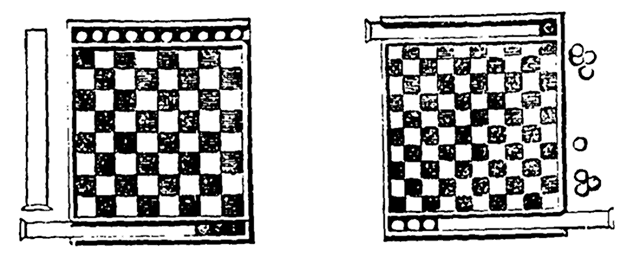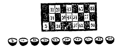 Note 4: (retour) Souvent, pour indiquer la personne qui dirigera le jeu, ou qui y remplira un certain rôle, on tire au sort, par le doigt mouillé, par pile ou face, ou par la courte paille. On sait assez ce que signifient ces différentes manières de tirer au sort, pour qu'il soit superflu d'en donner ici l'explication.