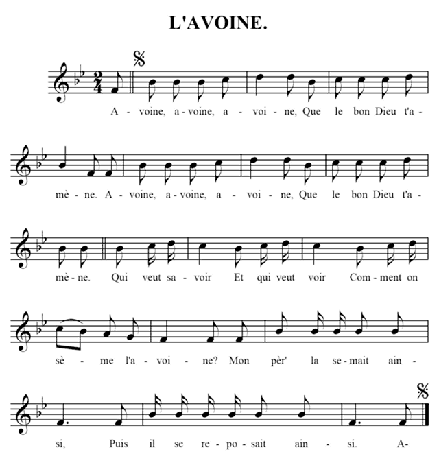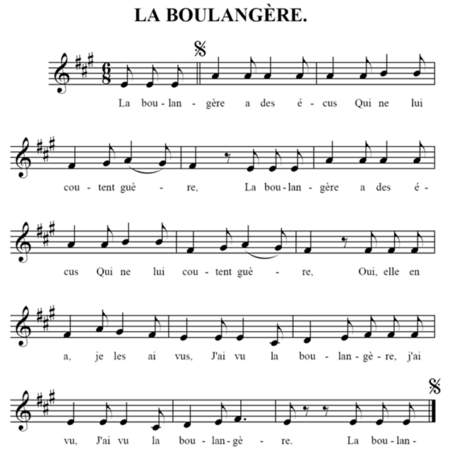 Plusieurs enfants, en se tenant par la robe, figurent un troupeau de moutons, ayant la bergère à 6 leur tête. Celle-ci chante, et les autres répètent après elle ces vers dont la rime n'est pas riche: