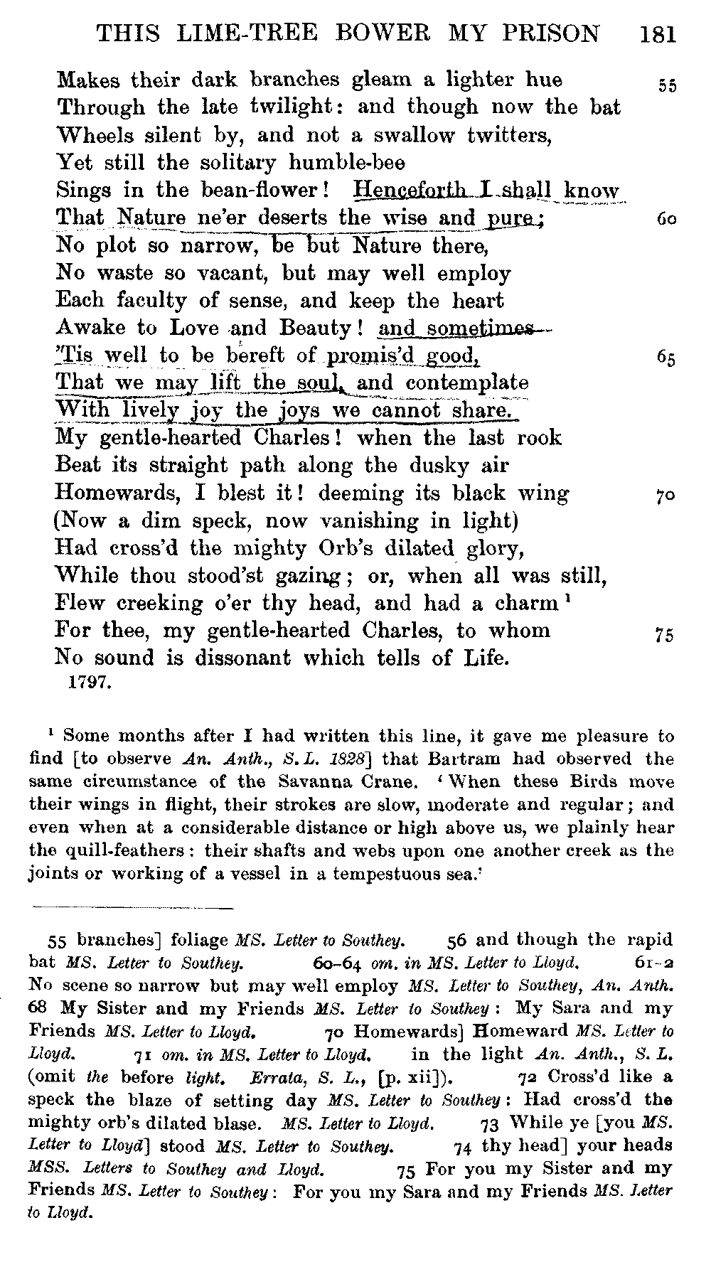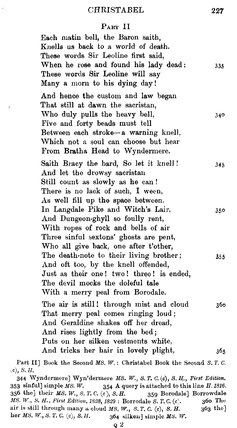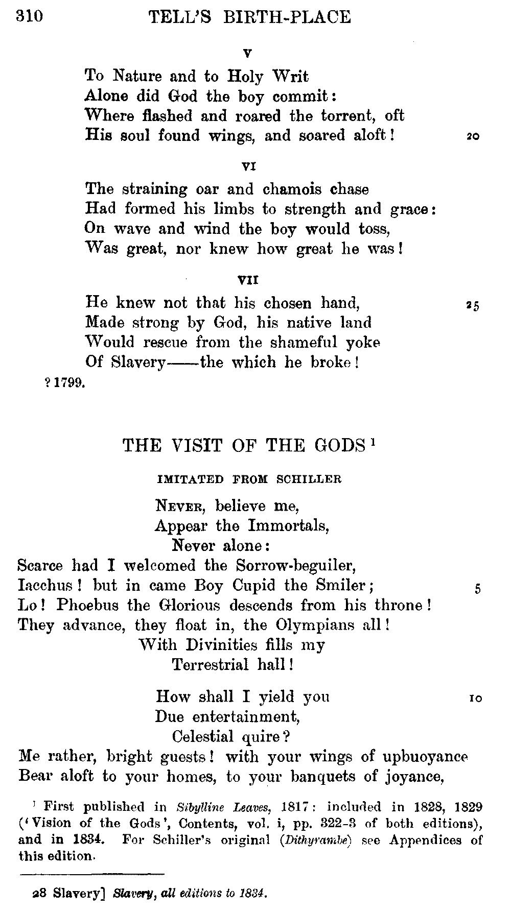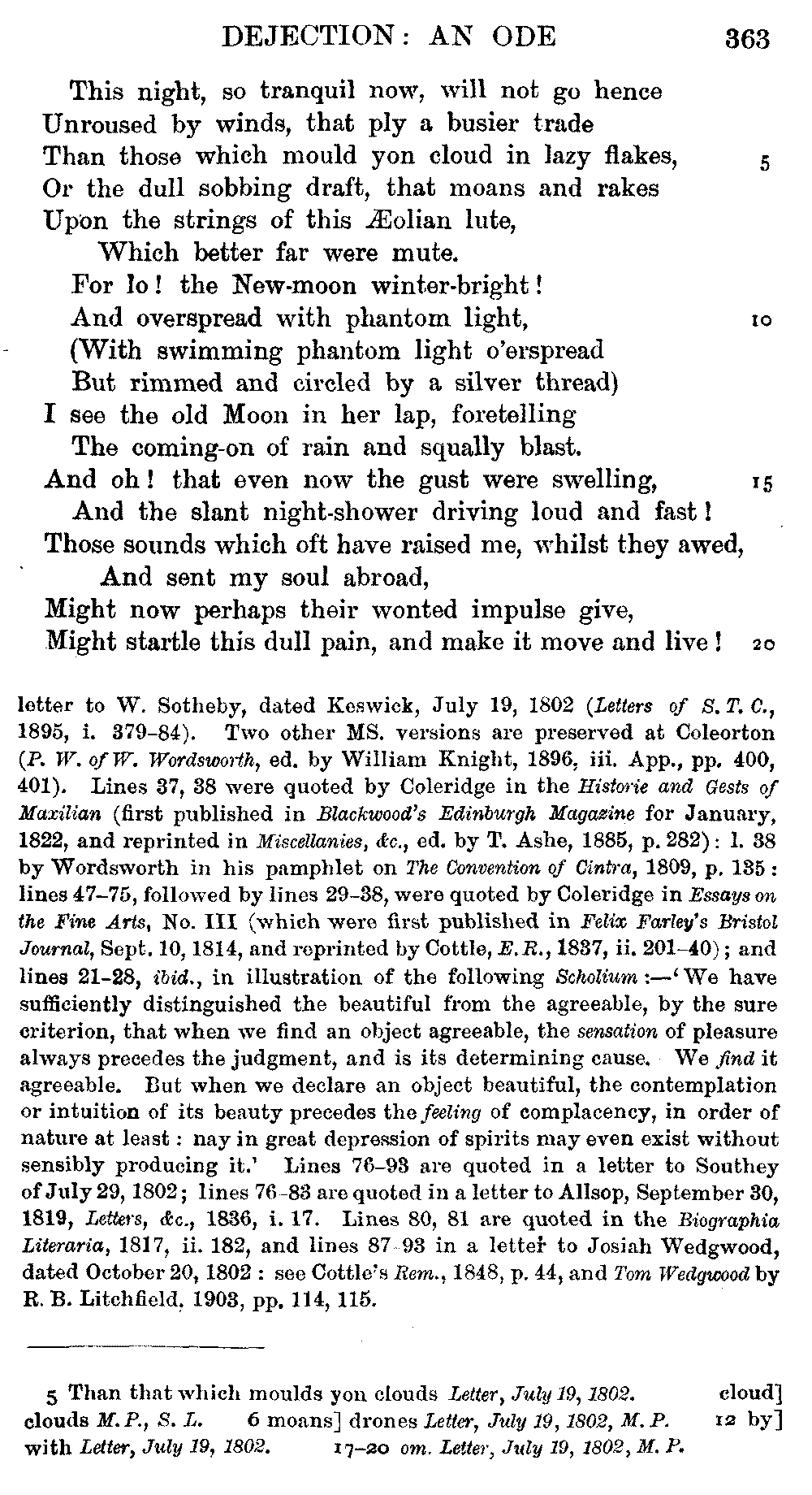 My plea is that it is difficult if not impossible to draw a line above which a variant is important and below which it is negligible; that, to use a word of the poet's own coining, his emendations are rarely if ever 'lightheartednesses'; and that if a collation of the printed text with MSS. is worth studying at all the one must be as decipherable as the other. Facsimiles are rare and costly productions, and an exhaustive table of variants is the nearest approach to a substitute. Many, I know, are the shortcomings, too many, I fear, are the errors in the footnotes to this volume, but now, for the first time, the MSS. of Coleridge's poems which are known to be extant are in a manner reproduced and made available for study and research.