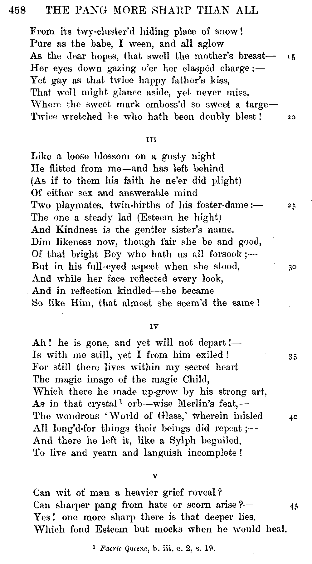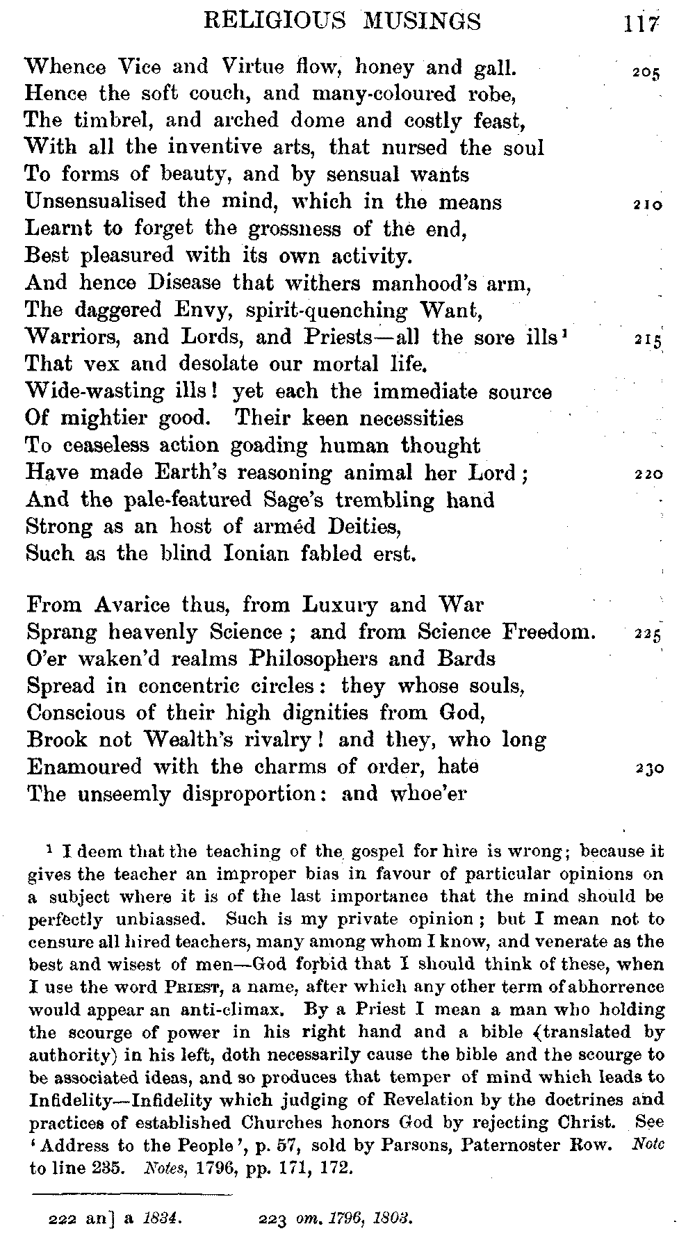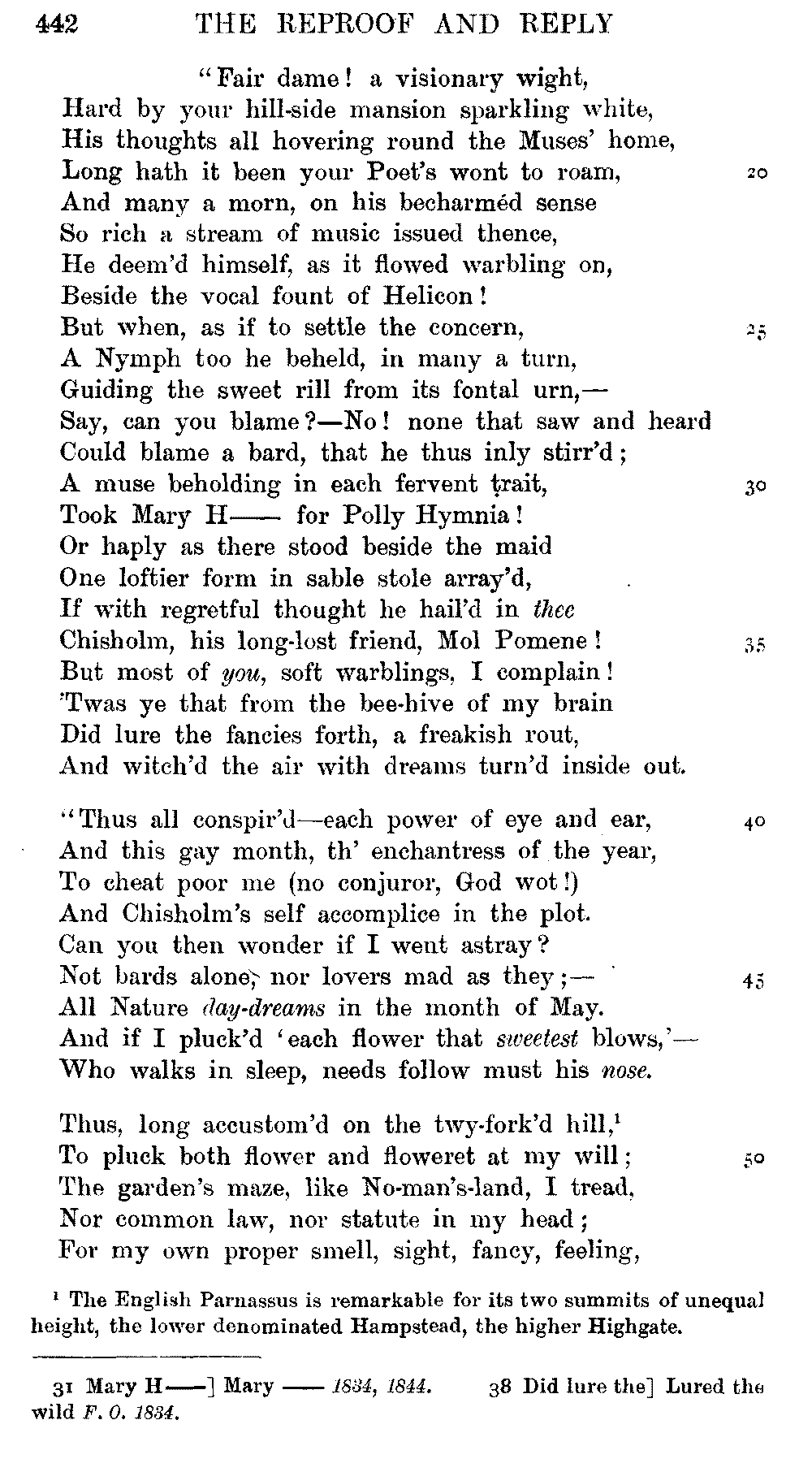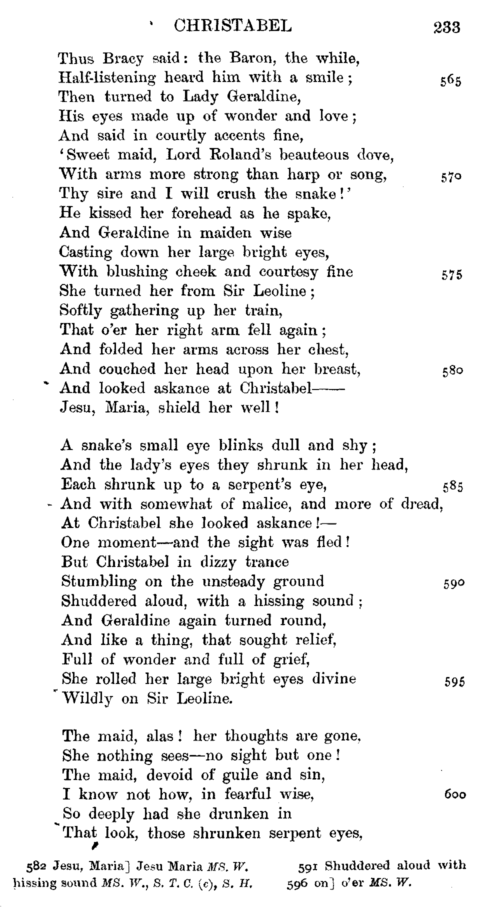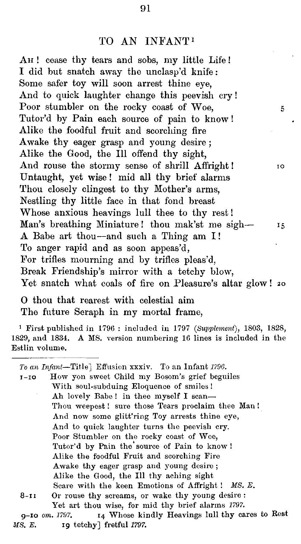 My plea is that it is difficult if not impossible to draw a line above which a variant is important and below which it is negligible; that, to use a word of the poet's own coining, his emendations are rarely if ever 'lightheartednesses'; and that if a collation of the printed text with MSS. is worth studying at all the one must be as decipherable as the other. Facsimiles are rare and costly productions, and an exhaustive table of variants is the nearest approach to a substitute. Many, I know, are the shortcomings, too many, I fear, are the errors in the footnotes to this volume, but now, for the first time, the MSS. of Coleridge's poems which are known to be extant are in a manner reproduced and made available for study and research.