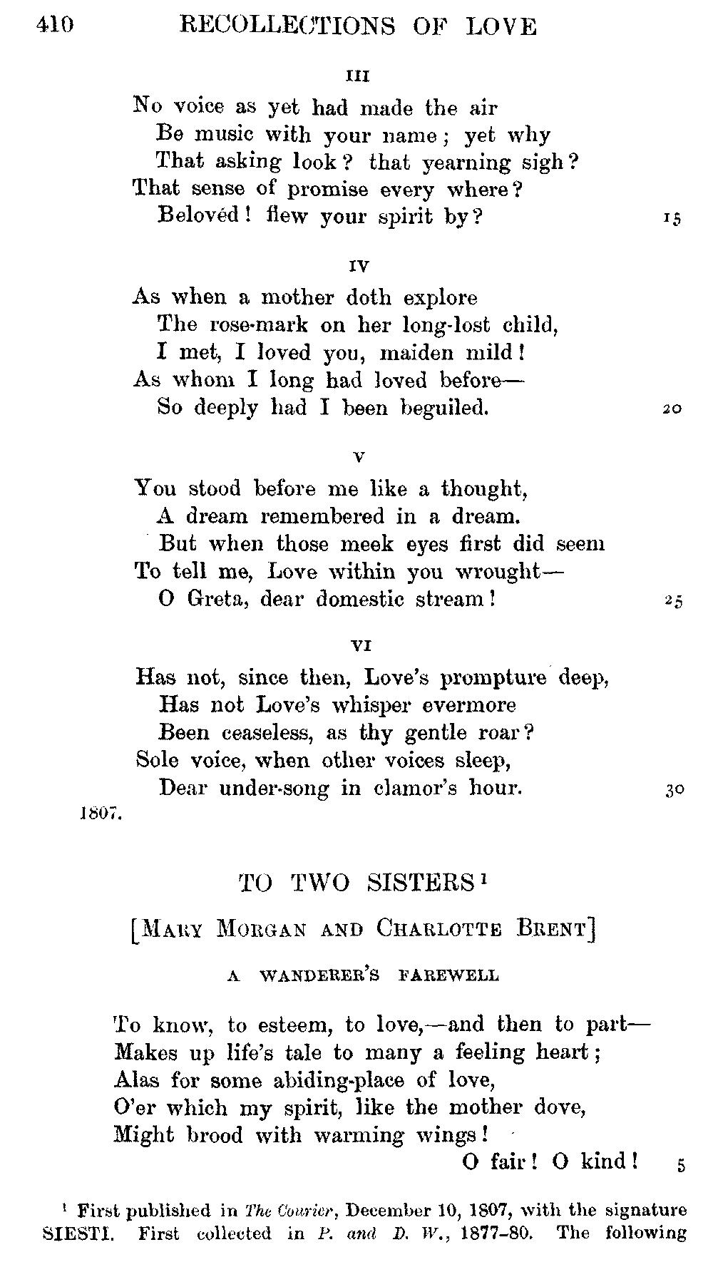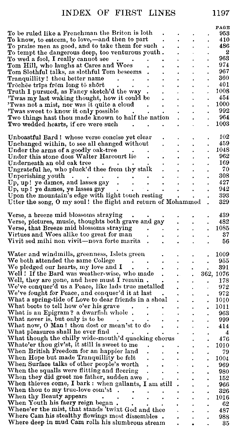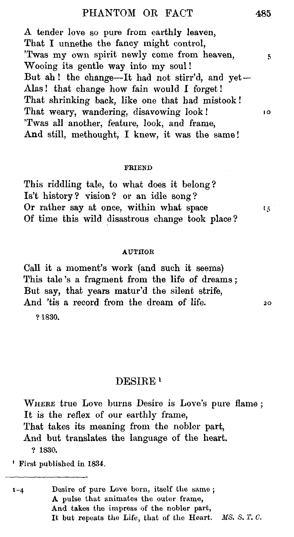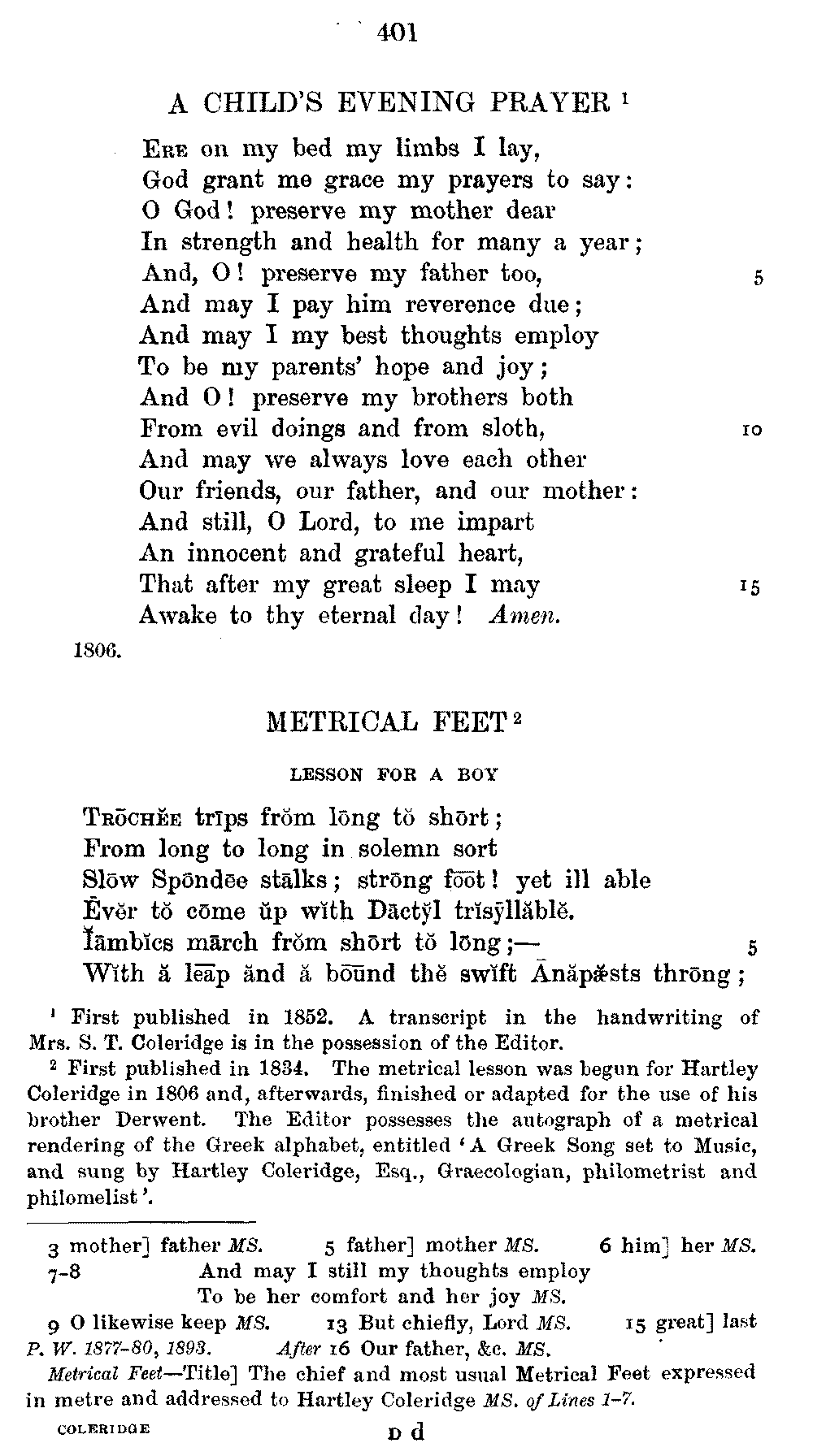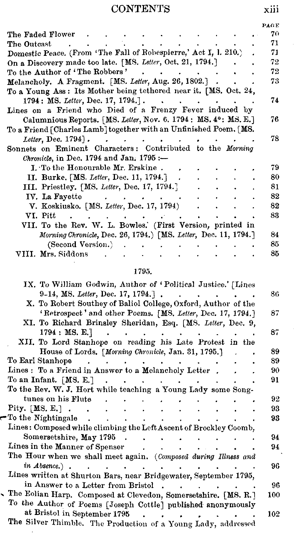 Finally, in the one-volume edition of the Poetical Works issued by Messrs. Macmillan in 1893, J. D. Campbell included in the text some twenty poems and in the Appendix a large number of poetical fragments and first drafts then printed for the first time from MS.