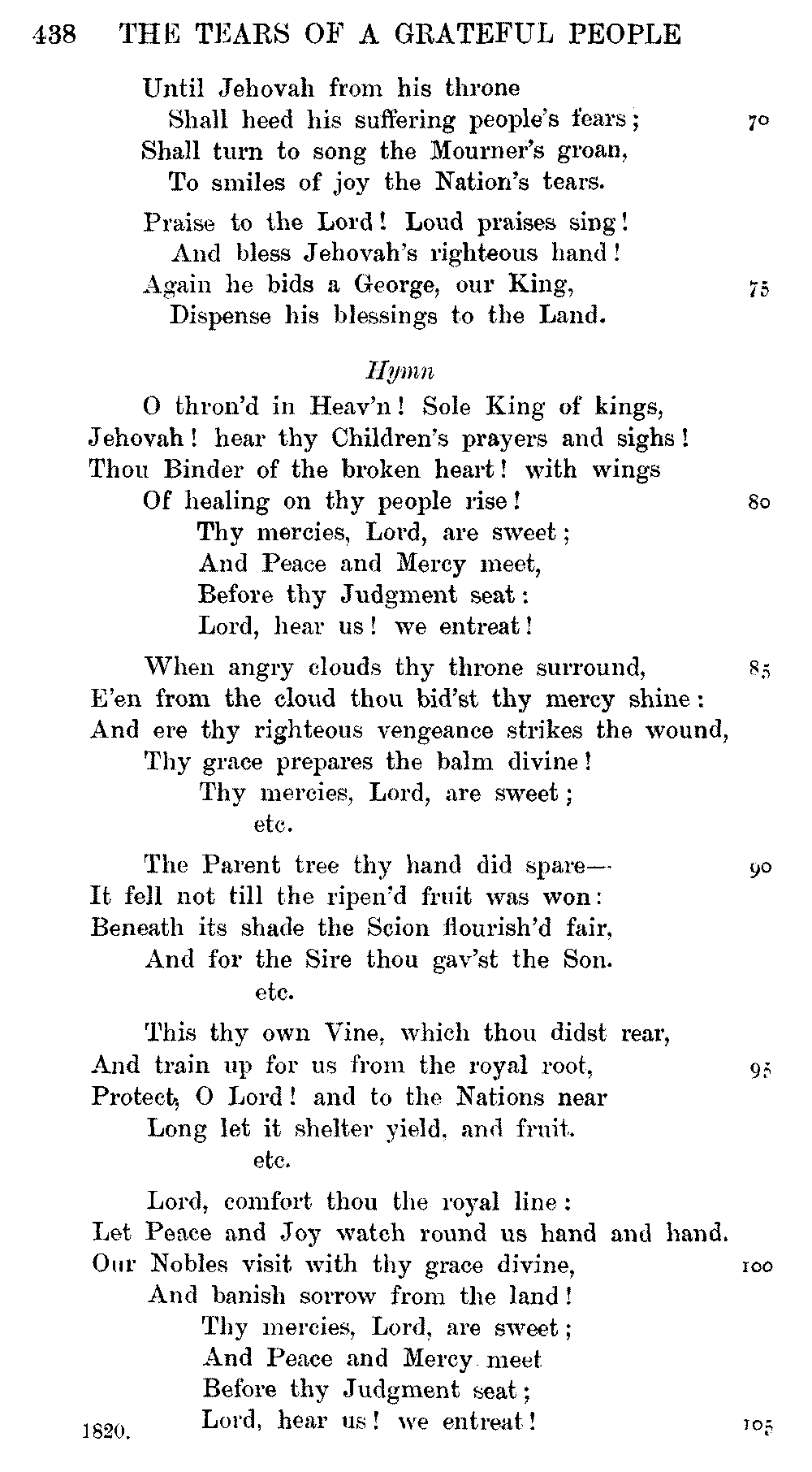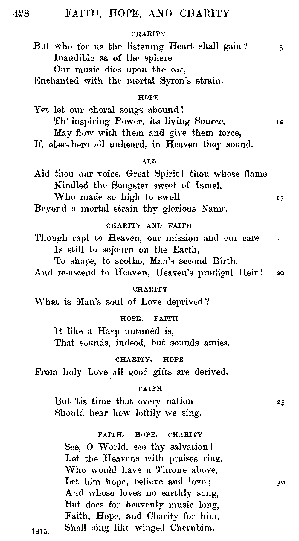 The fifth, 'Faith, Hope, and Charity' (p. 427), was translated from the Italian of Guarini at Calne, in 1815.
