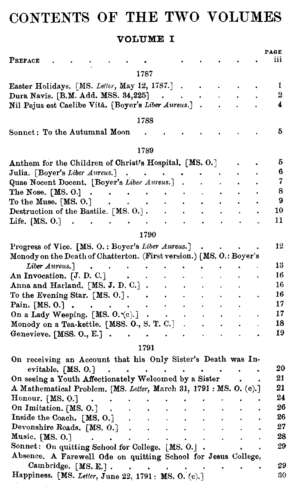 | Monody on the Death of Chatterton. (First version.) [MS. O.: Boyer's Liber Aureus.] | 13 | |