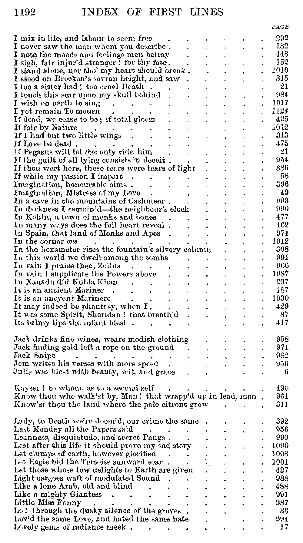 In 1863 and 1870 the 'new edition' of 1852 was reissued by Derwent Coleridge with an appendix containing thirteen poems collected for the first time in 1863. The reissue of 1870 contained a reprint of the first edition of the 'Ancient Mariner'.