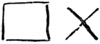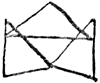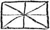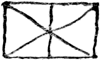 "One evening last week—after two thinkers, or agents, had been several times successful in instilling the idea of some object or drawing, at which they were looking, into the mind of the blindfold person, or percipient—I brought into the room a double opaque sheet of thick paper with a square drawn on one side and a St. Andrew's cross or X on the other, and silently arranged it between the two agents so that each looked on one side without any notion of what was on the[Pg 13] other. The percipient was not informed in any way that a novel modification was being made; and, as usual, there was no contact of any sort or kind—a clear space of several feet existing between each of the three people. I thought that by this variation I should decide whether one of the two agents was more active than the other; or, supposing them about equal, whether two ideas in two separate minds could be fused into one by the percipient.