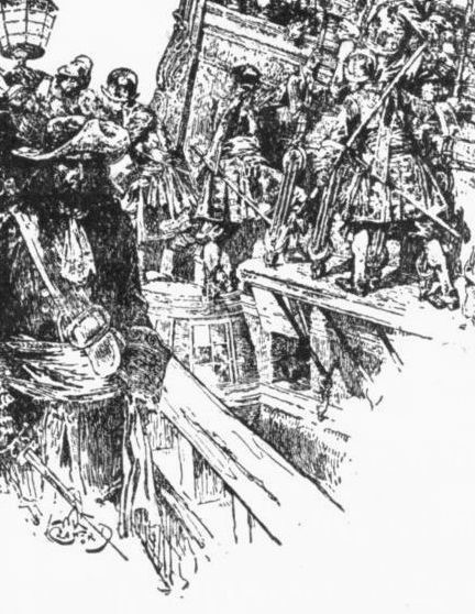 | With the point of his own sword pressed against the back of his neck, he repeated the message which Morgan had given him (see page 39) | 41 |