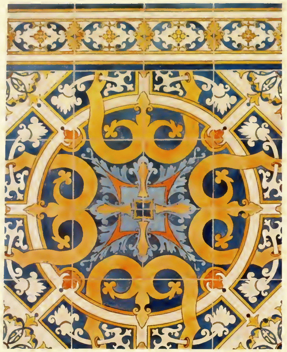 | Due to Arab influence—The word azulejo and its origin—The different stages in the development of tile making—Early tiles at Cintra Moorish in pattern and in technique—Tiles at Bacalhôa Moorish in technique but Renaissance in pattern—Later tiles without Moorish technique, e.g. at Santarem and elsewhere—Della Robbia ware at Bacalhôa—Pictures in blue and white tiles very common | 20-28 |