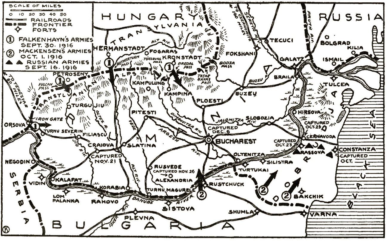 A great battle developed north of the Somme on September 2, 1916, in which the British and French forces took thousands of prisoners and captured important territory. After intense artillery preparation the French infantry cooperating with British troops attacked the German positions on a front of about three and three-quarter miles between the region north of Maurepas and the river. The strong German forces engaged were unable to resist the onslaught of the Allied troops. The villages of Forest, east of Maurepas, and Cléry-sur-Somme were captured, as well as all the German trenches along the route from Forest to Combles as far as the outskirts of the last place. The Germans launched with heavy forces a counterattack against the conquered positions, but were driven back by the heavy fire of the French batteries. The French official reports gave the number (p. 018) of unwounded prisoners captured in this battle as exceeding 2,000, and the booty taken included twelve guns and fifty machine guns. German aircraft which engaged British flyers during the progress of the battle were driven off with a loss of three machines destroyed and four badly injured. The British lost three.