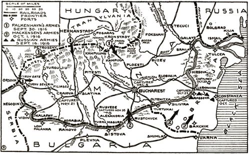 The British attack on the Germans around Guillemont, which took place as previously noted on August 8, 1916, was at first successful. A section of the troops carried some trenches, and then pushing on gained a useful piece of ground south of Guillemont with few casualties. Another (the left) section of British troops were unable to proceed farther on account of the darkness. Another section, owing to miscalculation, swept through the German trenches straight into the village of Guillemont, where they lost their direction amid the ruins and confusion. Working their way through the shattered streets they proceeded to dig themselves in when they had reached the far northeast corner of the place. With enemies all around them, and the breadth of the ruined village between them and their friends, the adventure could have but one conclusion. A few of the men succeeded in getting back to the British lines, but the remainder fell into the hands of the enemy.[Back to Contents]