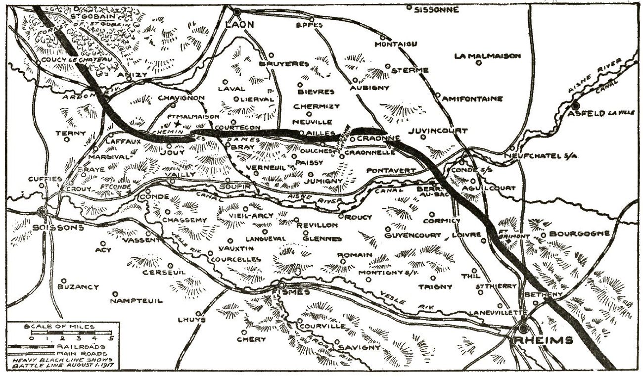 Southwest of Barleux the French infantry in a single push carried three successive German lines and advanced over a mile, which brought them to the outskirts of Berny and Deniécourt. To the south, by a well-planned enveloping movement, the village of Soyécourt was carried, and here a whole Prussian battalion was cut off and surrendered after a short resistance. South of Vermandovillers, where the Germans occupied a portion of the village, the French launched an attack on the German front in the afternoon, but it was night before they could break through north of Chilly. The French pushed on through the breach, forcing the Germans to retire to their second line, leaving 1,200 prisoners, guns and machine guns in French hands. Desperate attempts were made by the German General von Hein to recover the lost ground. Before the French had time to consolidate their (p. 019) positions he launched six counterattacks, all of which failed under the French barrage of fire. On September 4, 1916, the French made 2,700 prisoners between Barleux and Chilly.[Back to Contents]