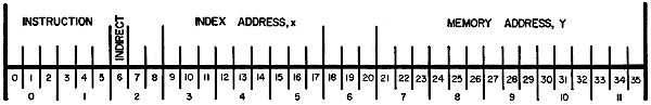 The octal digits 0 and 1 define the instruction code, thus, there are 64 possible instruction codes, not all of which are used. The first bit of octal digit 2 is the indirect address bit. If this bit is a ONE, indirect addressing occurs.