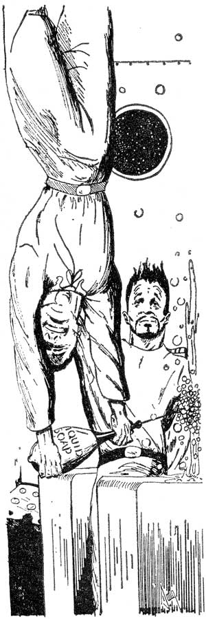 "Yes, but I don't think it'll be necessary," Jayjay said. "Hold on a minute." He went back up the stairs to the officers' washroom and, after a little search, got a container of liquid soap from the supplies. Then he went back down to the control room. He made the jump to the chair, holding on with one hand while he held the container of soap with the other.
