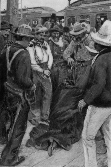 In five minutes or so he showed up. He wasn’t in the best shape, Hill said, and Santa Fé and the Hen each of ’em was giving him an arm; though what he seemed to need more’n arms, Hill said, was legs––the 38 ones he had, judging from the way he couldn’t manage ’em, not being in first-class order and working bad. But he didn’t make no exhibition of himself, and talked right enough––only he spoke sort of short and scrappy––and the three of ’em was as friendly together as friendly could be. Hill said he didn’t think it was any hurt to listen, things being the way they was, and he edged up close to ’em––while they stood waiting for the porter to light up the Pullman––and though he couldn’t quite make sense of all they was saying he did get on to enough of it to size up pretty close how they’d put the old gent through.