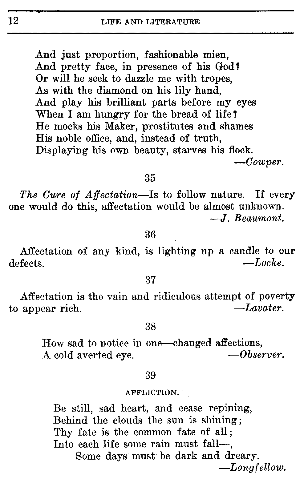 The Cure of Affectation—Is to follow nature. If every one would do this, affectation would be almost unknown.
