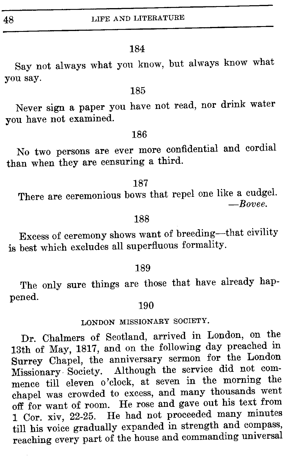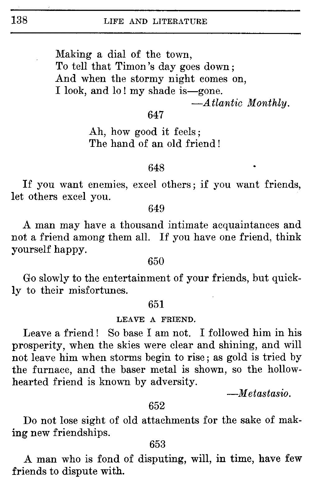 Acquaintances—It is easy to make acquaintances, but sometimes difficult to shake them off, however irksome and unprofitable they are found, after we have once committed ourselves to them.