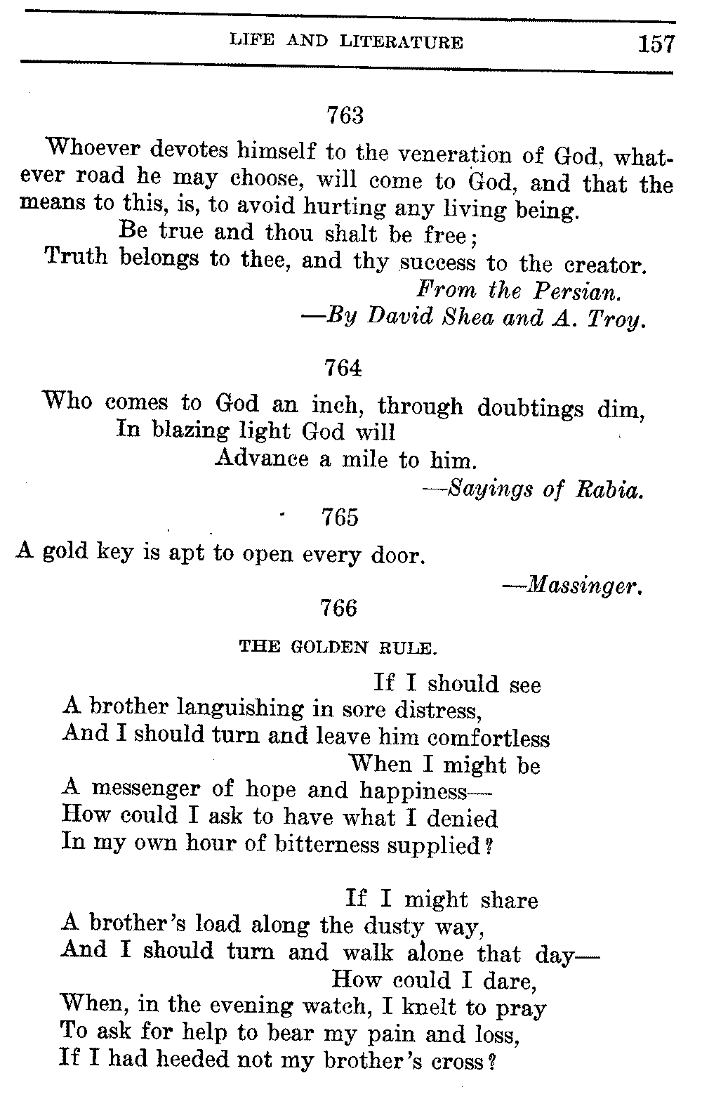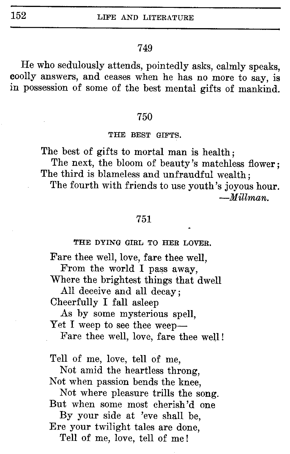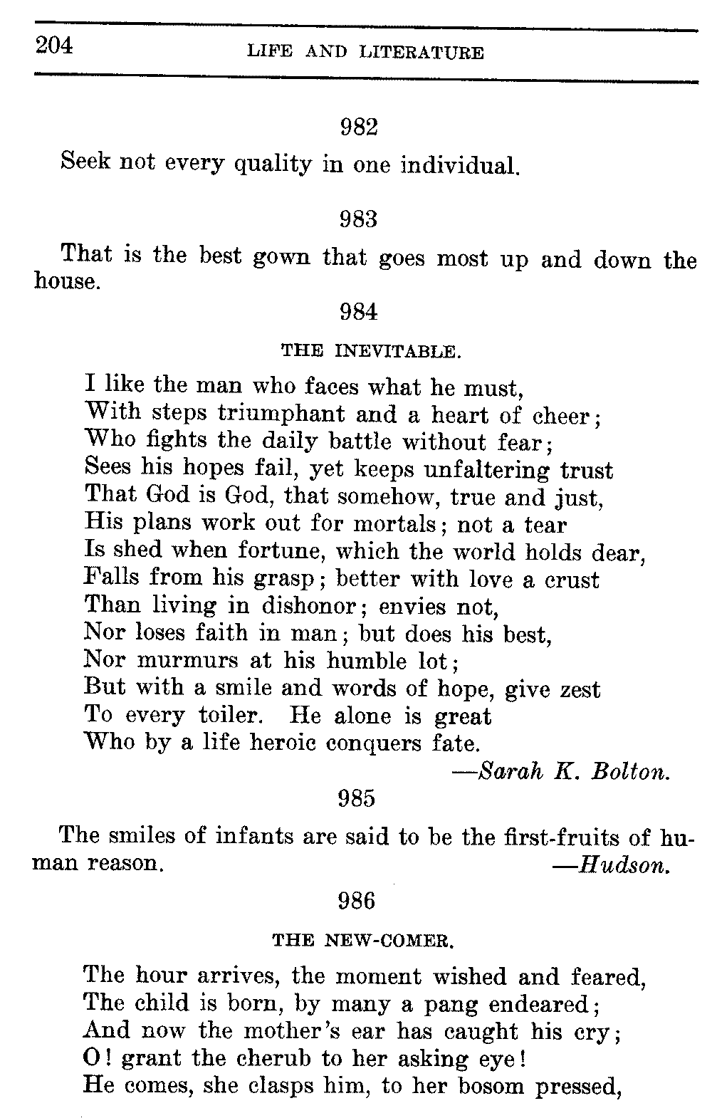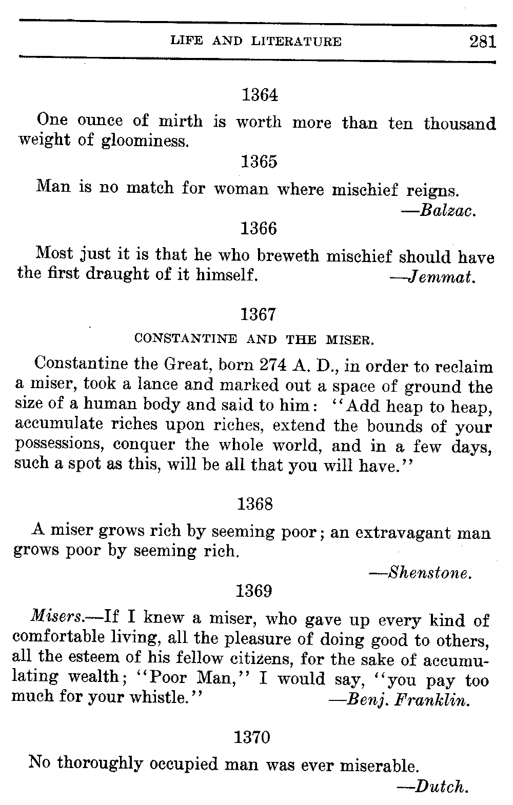 Good sir, or madam, whosoever thou mayest be, to whom this volume shall come, cast it not aside, but read it. Its quaint, curious, and helpful selections have been gathered through many years of careful research on both sides of the Atlantic. They will make thee wiser and better, and will conduce to the growth of thy mind, and the health of thy body. Let this book be to thee a magazine of literary food, of which thou shalt partake, and which thou shalt assimilate and digest to the constant increase of thy well being.