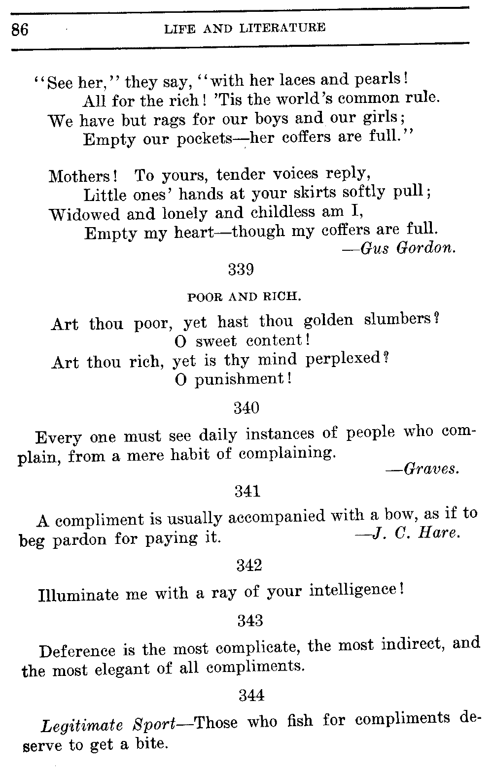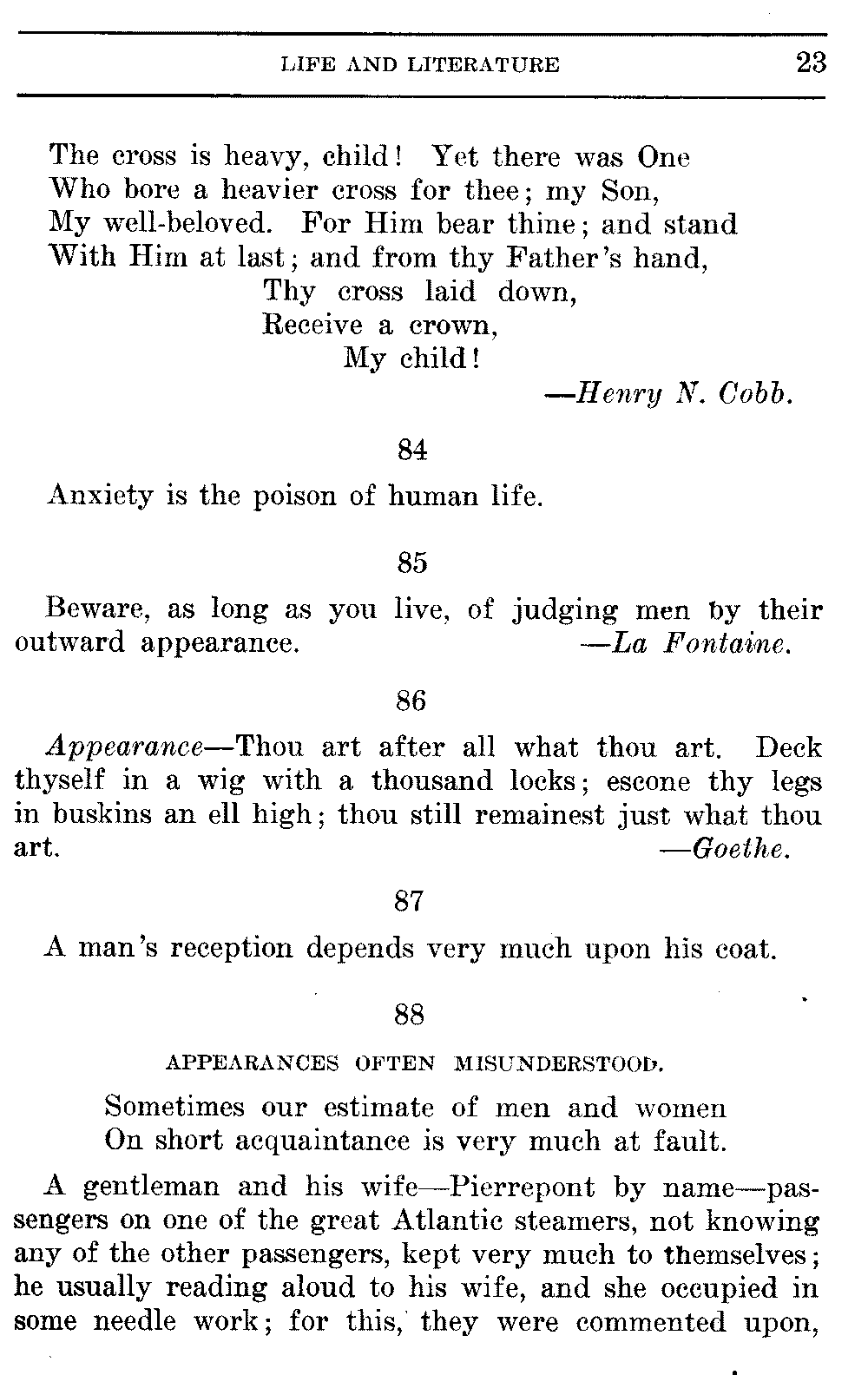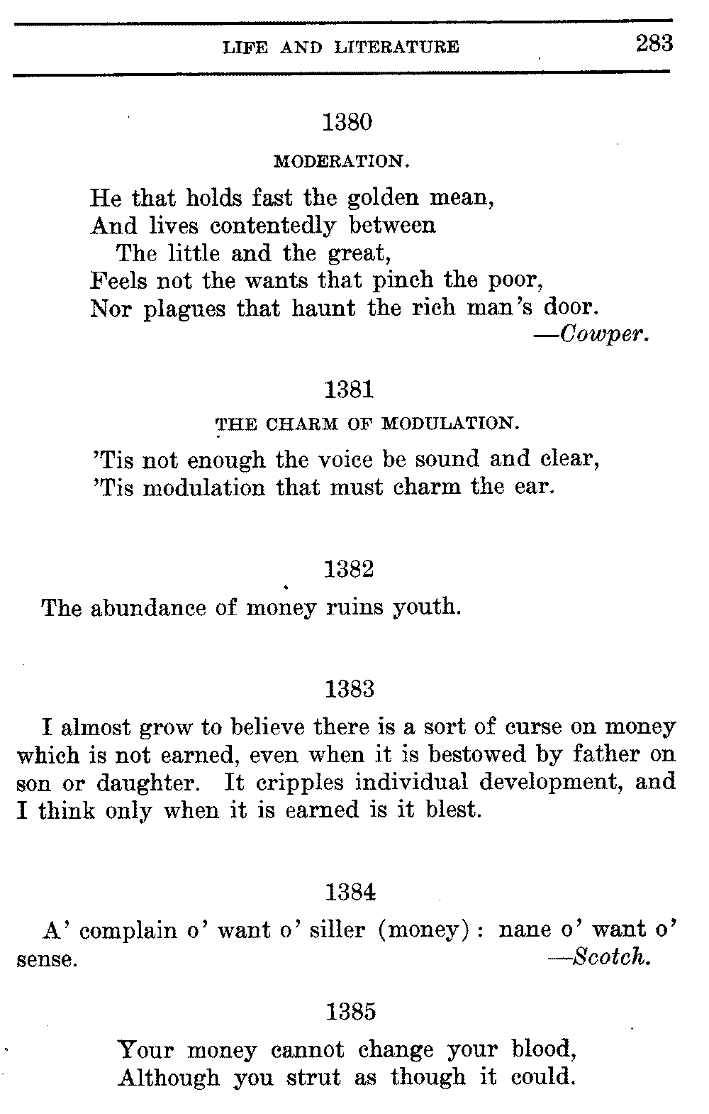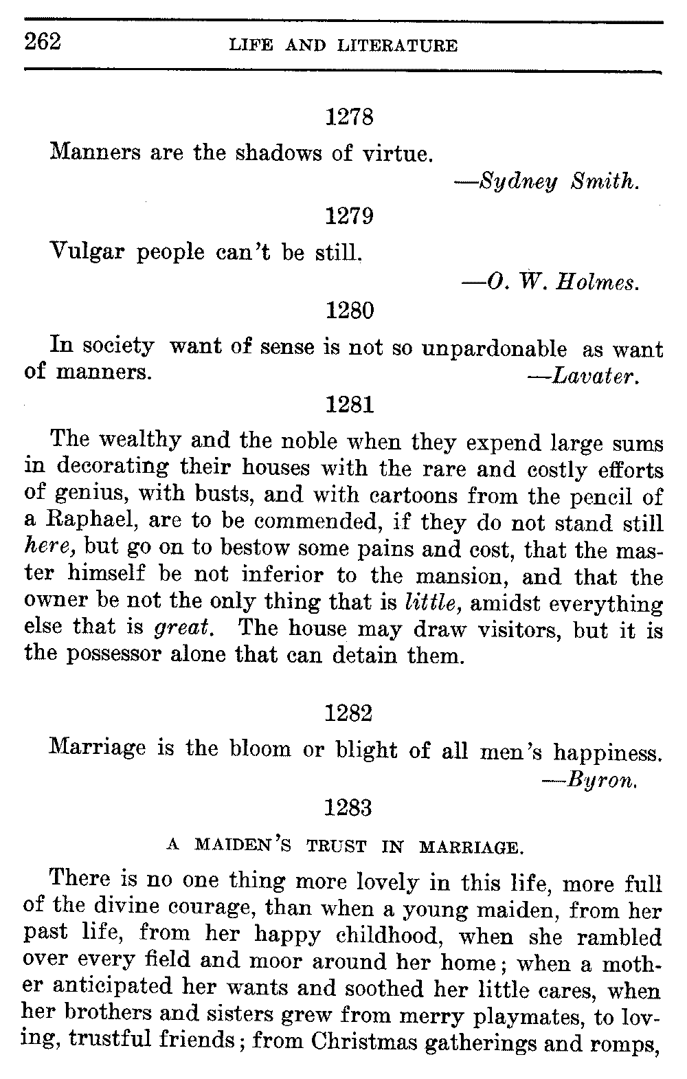 Good sir, or madam, whosoever thou mayest be, to whom this volume shall come, cast it not aside, but read it. Its quaint, curious, and helpful selections have been gathered through many years of careful research on both sides of the Atlantic. They will make thee wiser and better, and will conduce to the growth of thy mind, and the health of thy body. Let this book be to thee a magazine of literary food, of which thou shalt partake, and which thou shalt assimilate and digest to the constant increase of thy well being.