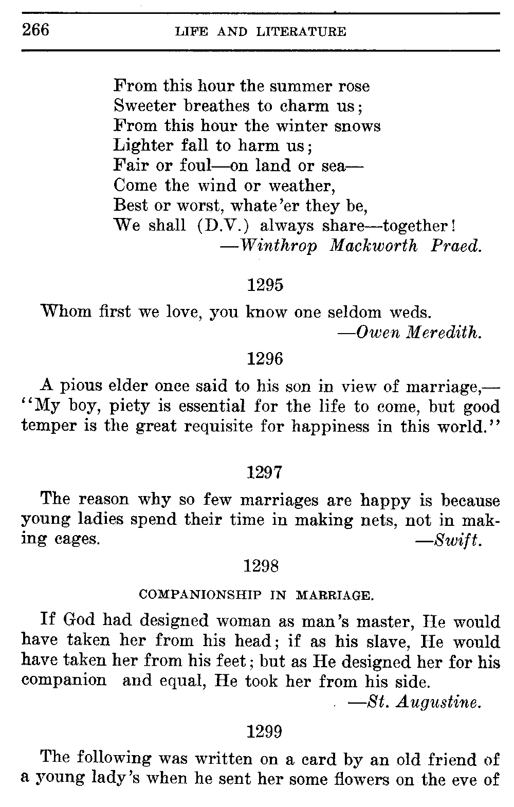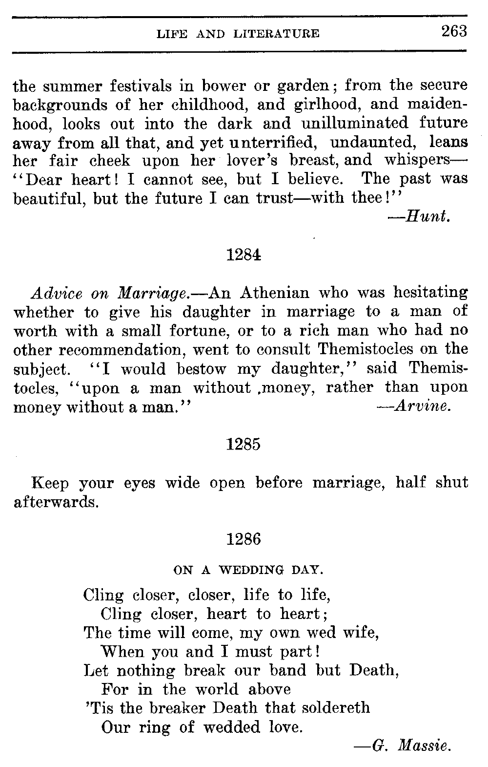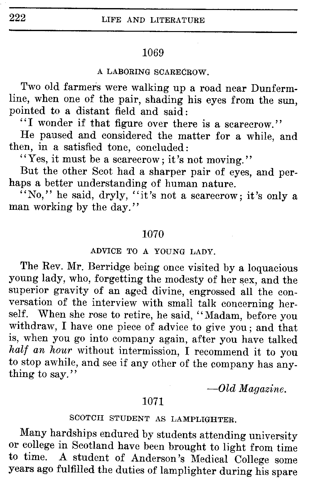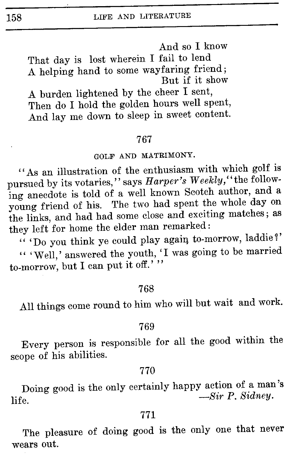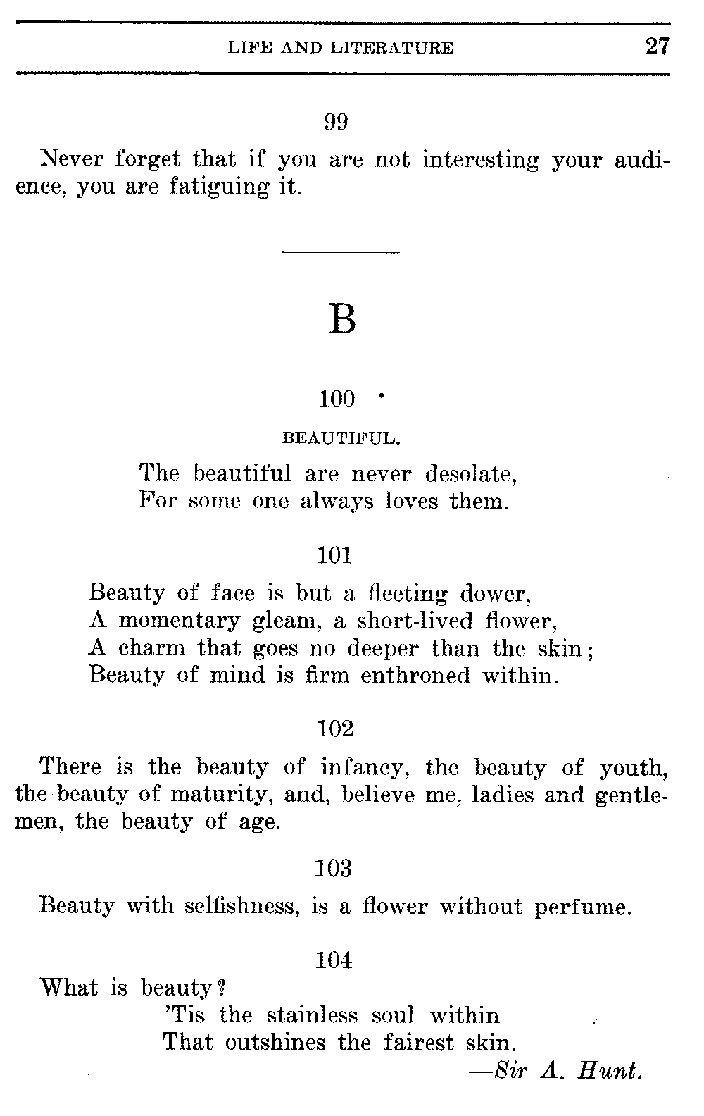 Good sir, or madam, whosoever thou mayest be, to whom this volume shall come, cast it not aside, but read it. Its quaint, curious, and helpful selections have been gathered through many years of careful research on both sides of the Atlantic. They will make thee wiser and better, and will conduce to the growth of thy mind, and the health of thy body. Let this book be to thee a magazine of literary food, of which thou shalt partake, and which thou shalt assimilate and digest to the constant increase of thy well being.