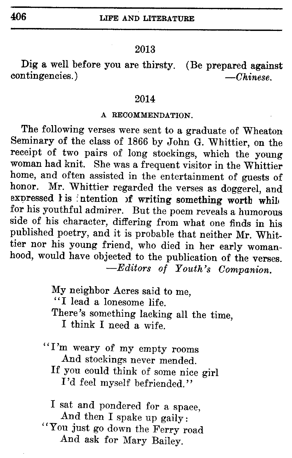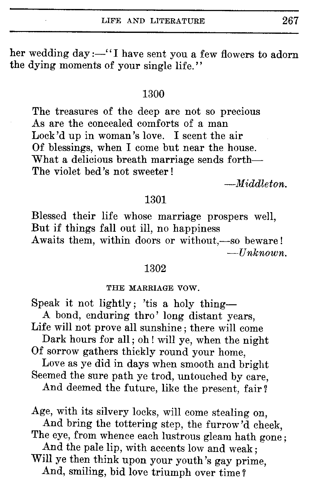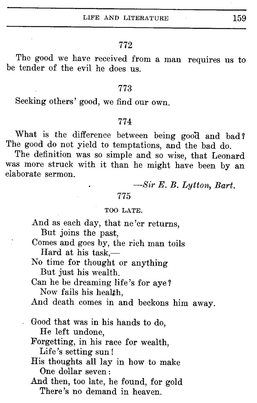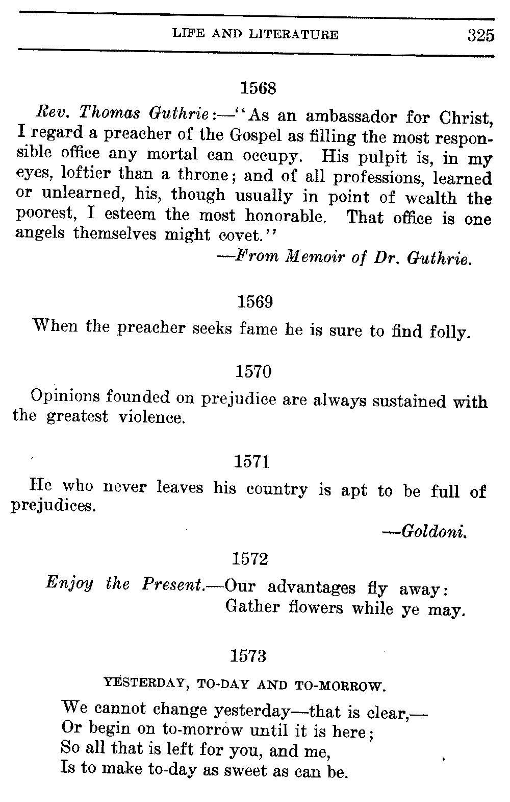 Good sir, or madam, whosoever thou mayest be, to whom this volume shall come, cast it not aside, but read it. Its quaint, curious, and helpful selections have been gathered through many years of careful research on both sides of the Atlantic. They will make thee wiser and better, and will conduce to the growth of thy mind, and the health of thy body. Let this book be to thee a magazine of literary food, of which thou shalt partake, and which thou shalt assimilate and digest to the constant increase of thy well being.