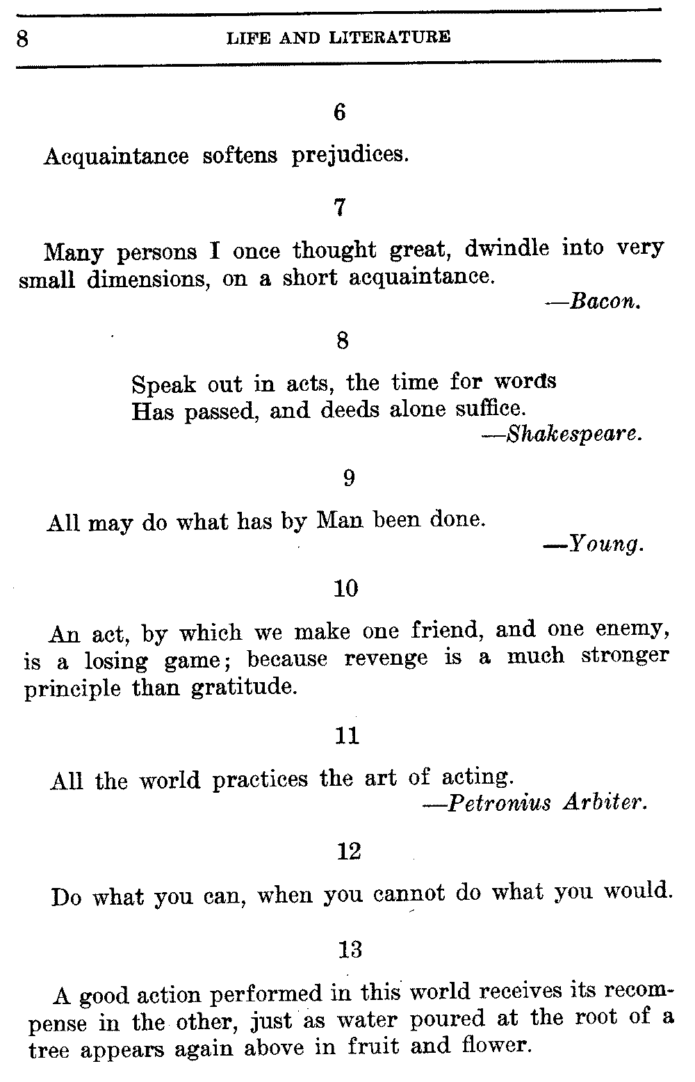 Many persons I once thought great, dwindle into very small dimensions, on a short acquaintance.