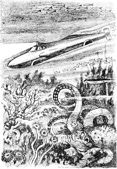 The sleek, tapered cylindroid might easily have been mistaken for a Naval torpedo, since it was roughly the same size and shape. Actually, it was a sort of hybrid, combining the torpedo and the two-man submarine that the Japanese had used in World War II, plus refinements contributed by such apparently diverse arts as skin-diving, cybernetics, and nucleonics.