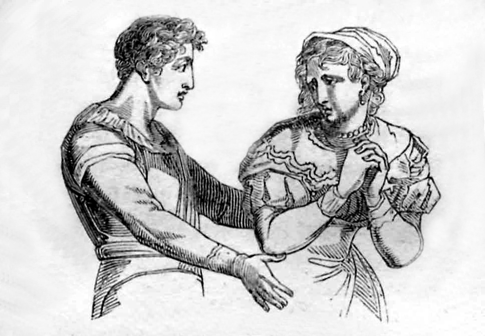 His love is transport, her's is trembling duty;