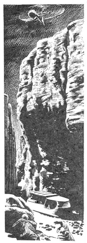 Homer Crawford opened his mouth to protest, then closed it. He reached inside the solar-powered lorry and fetched forth a Tommy-Noiseless and started for the rock outcropping at a trot. Having made his decision, he wasn't going to cramp Bey-ag-Akhamouk's style with needless palaver.