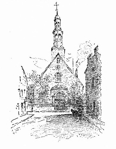 The year 1620 was a red letter day in the history of the Colony, when, from a little vessel moored at the foot of the cliff, he led on shore at Quebec his young bride, who with her three maids had come to the western wilderness, the first gentlewoman to land on Canadian shores. He conducted her to where is now the corner of Notre Dame and Sous-le-Fort streets, to the rude "habitation" he had prepared for her reception, which was poorly furnished and unhomelike in comparison to the one which she had left over the sea. But history tells of no word of complaint nor disappointment coming from the gentle lips; but, as the youthful châteleine sat by her hearth, it shed a light among the huts of the settlers and dusky lodges of the natives, as her example of patience and duty performed by the first refined, civilized fireside in the land does[Pg 33] to the thousands who have succeeded her. After almost three hundred years, the "charms of her person, her elegance and kindliness of manner" are still remembered. The chronicler tells us that the "Governor's lady wore in her daily rambles, amongst the wigwams, an article of feminine attire, not unusual in those days, a small mirror at her girdle." It appealed irresistibly to the simple natures around her, that "a beauteous being should love them so much as to carry their images reflected close to her heart."