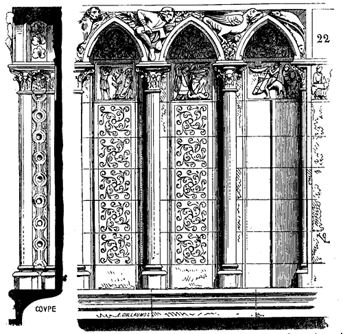 Après un séjour de deux ans en Italie nous fûmes plus vivement frappé encore de l'aspect de nos édifices français, de la sagesse et de la science qui ont présidé à leur exécution, de l'unité, de l'harmonie et de la méthode suivies dans leur construction comme dans leur parure. Déjà cependant des esprits distingués avaient ouvert la voie; éclairés par les travaux et l'admiration de nos voisins les Anglais, ils songeaient à classer les édifices par styles et par époques. On ne s'en tenait plus à des textes la plupart erronés, on admettait un classement archéologique basé sur l'observation des monuments eux-mêmes. Les premiers travaux de M. de Caumont faisaient ressortir des caractères bien tranchés entre les différentes époques de l'architecture française du nord. En 1831, M. Vitet adressait au ministre de l'Intérieur un rapport sur les monuments des départements de l'Oise, de l'Aisne, du Nord, de la Marne et du Pas-de-Calais, dans lequel l'élégant écrivain signalait à l'attention du gouvernement des trésors inconnus, bien qu'ils fussent à nos portes. Plus tard, M. Mérimée poursuivait les recherches si heureusement commencées par M. Vitet, et, parcourant toutes les anciennes provinces de France, sauvait de la ruine quantité d'édifices que personne alors ne songeait à regarder, et qui font aujourd'hui la richesse et l'orgueil des villes qui les possèdent. M. Didron expliquait les poëmes sculptés et peints qui couvrent nos cathédrales, et poursuivait à outrance le vandalisme partout où il voulait tenter quelque oeuvre de destruction. Mais, il faut le dire à notre honte, les artistes restaient en arrière, les architectes couraient en Italie ne commençant à ouvrir les yeux qu'à Gênes ou Florence; ils revenaient leurs portefeuilles remplis d'études faites sans critique et sans ordre, et se mettaient à l'oeuvre sans avoir mis les pieds dans un monument de leur pays.