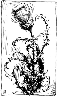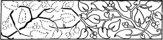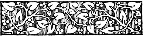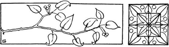 As an example: Much of the material devised for the decoration of the printed page (ornaments and borders) is derived from natural forms; i. e., leaves, flowers, etc. The leaves, stems, and flowers which are adapted to form the ornament shown in Fig. 1 are a flat pattern of black and white. The same material is rendered pictorially in the pen sketch accompanying the ornament. It will be observed that the flat treatment[Pg 10] of the ornament depends upon arrangement of interesting flat masses for its significance. The pen sketch not only conveys an impression of the form of the natural objects, but it also suggests depth. A photograph of the natural objects, reproduced by a printing plate, would be still more realistic.