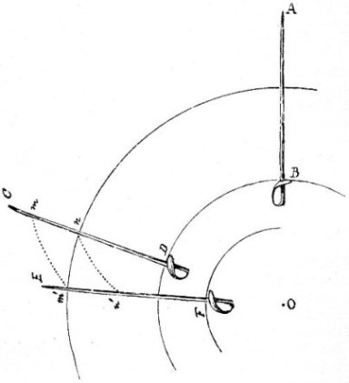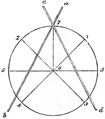 In the accompanying diagram are marked the ordinary broad-sword cuts 1 to 4, 2 to 3, 3 to 2, 4 to 1, 5 to 6, 6 to 5, and 7 to 0, the centre of the target.