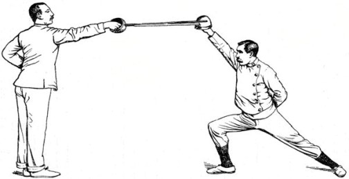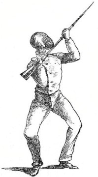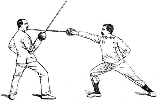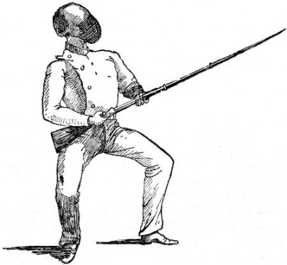 Thus we can imagine that the birth of quarter-staff play—not much play about it in those days—was a very simple affair; and we recognize in it the origin and foundation of all the sword exercises, and all the games in which single-stick, lance, and bayonet play a prominent part.