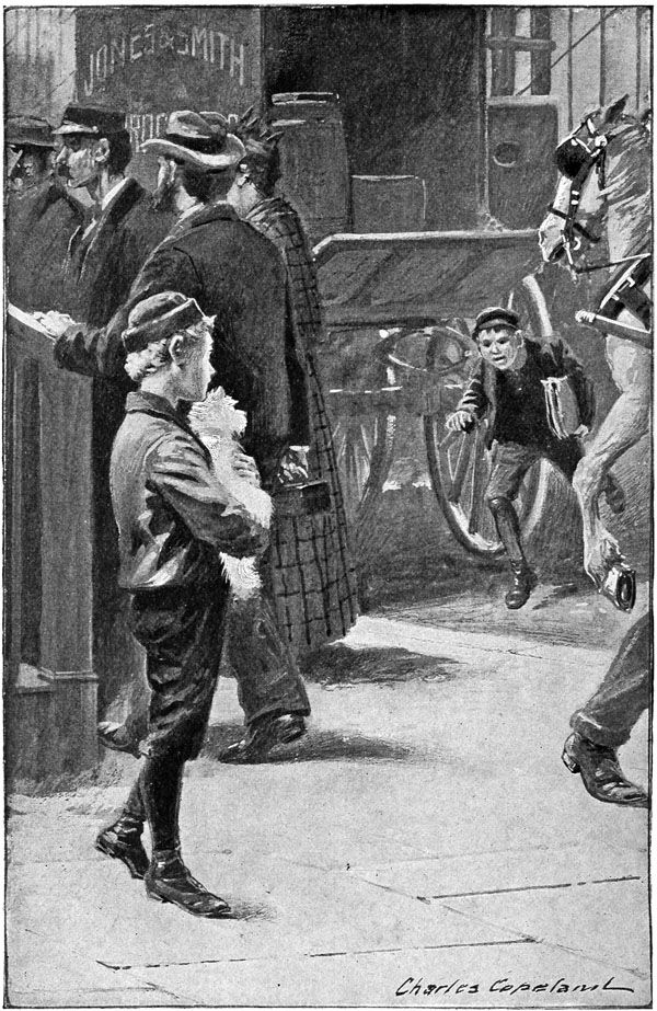 “It is not a simple matter to find any particular street merchant in New York City; but Messrs. Symonds & Symonds began their search by advertising in the newspapers for the lad. As has been since learned, the friends of the young heir saw the notice which had been inserted by the attorneys, and straightway believed the lad was wanted because of some crime committed. The boy himself must have had a guilty conscience, for he fled without delay, carrying with him into exile a small white terrier, his only worldly possession. The moral of this incident is, that when you want to find a boy of the streets, be careful to state exactly why you desire to see him, otherwise the game may give you the slip rather than take chances of being brought face to face with the officers of the law.”