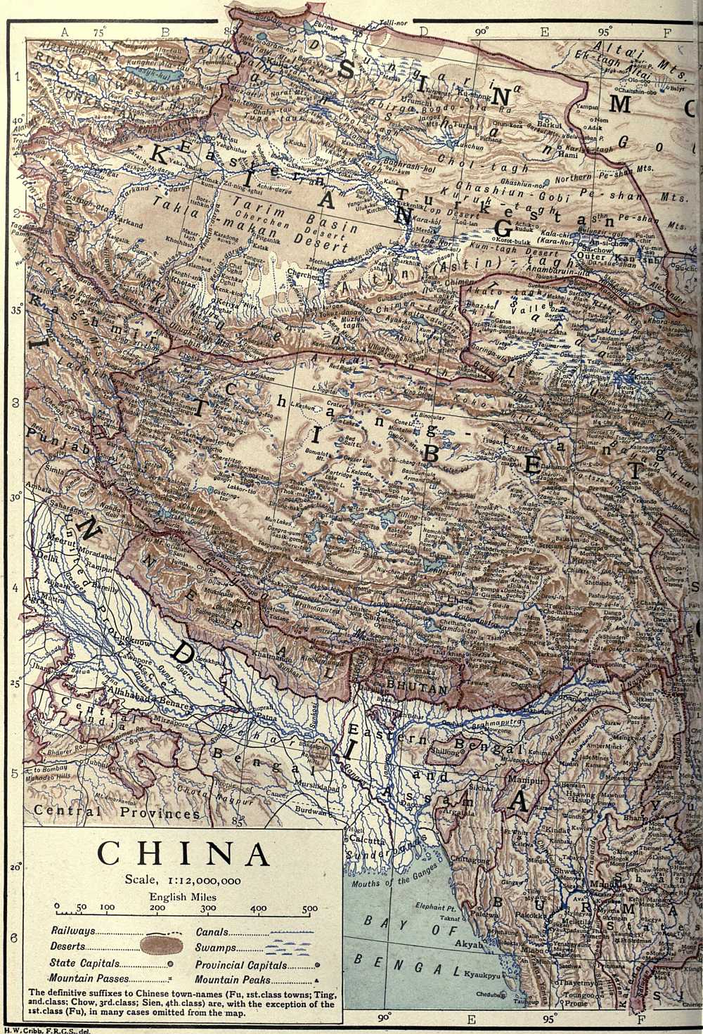 CHIH-LI (“Direct Rule”), the metropolitan province of China, in which is situated Peking, the capital of the empire. It contains eleven prefectural cities, and occupies an area of 58,950 sq. m. The population is 29,400,000, the vast majority of whom are resident in the plain country. This province forms part of the great delta plain of China proper, 20,000 sq. m. of which are within the provincial boundaries; the remainder of the territory consists of the mountain ranges which define its northern and western frontier. The plain of Chih-li is formed principally by detritus deposited by the Pei-ho and its tributary the Hun-ho (“muddy river”), otherwise known as the Yung-ting-ko, and other streams having their sources in mountains of Shan-si and other ranges. It is bounded E. by the Gulf of Chih-li and Shan-tung, and S. by Shan-tung and Ho-nan. The proportion of Mahommedans among the population is very large. In Peking there are said to be as many as 20,000 Mahommedan families, and in Pao-ting Fu, the capital of the province, there are about 1000 followers of the prophet. The extremes of heat and cold in Chih-li are very marked. During the months of December, January and February the rivers are frozen up, and even the Gulf of Chih-li is fringed with a broad border of ice. There are four rivers of some importance in the province: the Pei-ho, with the Hun-ho, which rises in the mountains in Mongolia and, flowing to the west of Peking, forms a junction with the Pei-ho at Tientsin; the Shang-si-ho, which rises in the mountains on the north of the province of Shan-si, and takes a south-easterly course as far as the neighbourhood of Ki Chow, from which point it trends north-east and eventually joines the Hun-ho some 15 m. above Tientsin; the Pu-to-ho, which rises in Shan-si, and after running a parallel course to Shang-si-ho on the south, empties itself in the same way into the Hun-ho; and the Lan-ho, which rises in Mongolia, enters the province on the north-east after passing to the west of Jehol, passes the city of Yung-p‘ing Fu in its course (which is south-easterly) through Chih-li, and from thence winds its way to the north-eastern boundary of the Gulf of Chih-li. The province contains three lakes of considerable size. The largest is the Ta-lu-tsze Hu, which lies in 37° 40′ N. and 115° 20′ E.; the second in importance is one which is situated to the east of Pao-ting Fu; and the third is the Tu-lu-tsze Hu, which lies east by north of Shun-te Fu. Four high roads radiate from Peking, one leading to Urga by way of Süan-hwa Fu, which passes through the Great Wall at Chang-kiu K‘ow; another, which enters Mongolia through the Ku-pei K‘ow to the north-east, and after continuing that course as far as Fung-ning turns in a north-westerly direction to Dolonnor; a third striking due east by way of T‘ung-chow and Yung-p‘ing Fu to Shan-hai Kwan, the point where the Great Wall terminates on the coast; and a fourth which trends in a south-westerly direction to Pao-ting Fu and on to T‘ai-yuen Fu in Shan-si. The mountain ranges to the north of the province abound with coal, notably at Chai-tang, T‘ai-gan-shan, Miao-gan-ling, and Fu-tao in the Si-shan or Western Hills. “At Chai-tang,” wrote Baron von Richthofen, “I was surprised to walk over a regular succession of coal-bearing strata, the thickness of which, estimating it step by step as I proceeded gradually from the lowest to the highest strata, exceeds 7000 ft.” The coal here is anthracite, as is also that at T‘ai-gan-shan, where are found beds of greater value than any in the neighbourhood of Peking. In Süan-hwa Fu coal is also found, but not in such quantities as in the places above named. Iron and silver also exist in small quantities in different parts of the province, and hot and warm springs are very common at the foot of the hills along the northern and western edges of the province. The principal agricultural products are wheat, kao-liang, oats, millet, maize, pulse and potatoes. Fruits and vegetables are also grown in large quantities. Of the former the chief kinds are pears, apples, plums, apricots, peaches, persimmons and melons. Tientsin is the Treaty Port of the province.