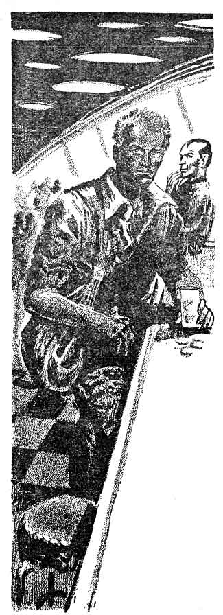 "Place your bets, ladies and gentlemen," the diceman droned. "Eight is the point." His rake swept over the board collecting a few munit plaques on the wrong spots. Redman had the dice. He rolled. Eight—a five and a three. "Let it ride," he said,—and I jumped nervously. He should have said, "Leave it." But the diceman was no purist. Another roll—seven. The diceman looked inquiringly at Redman. The big man shook his head, and rolled again—four. Three rolls later he made his point. Then he rolled another seven, another seven, and an eleven. And the pile of munits in front of him had become a respectable heap.