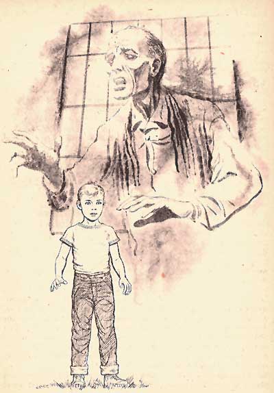 onny picked up the empty glass that had held his chocolate milk from the back steps where he had left it and went inside. As he stepped into the kitchen, he knew what another kitchen had looked like for a five-year-old child who had been Purcell ninety years ago. There had been an iron sink, and a brown-and-green-spotted faucet, and the glass had been heavier and transparent, like real glass.