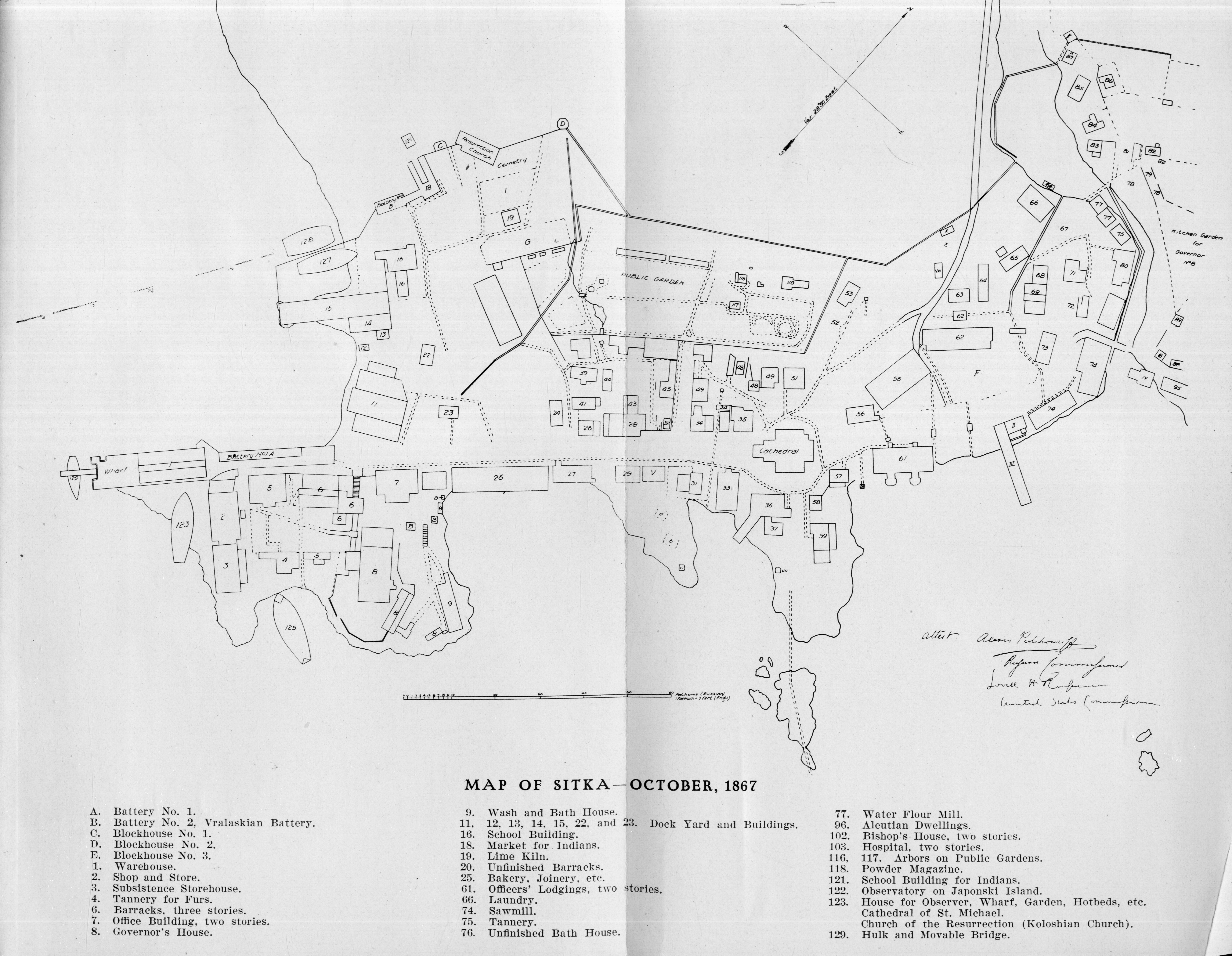 Some may have an interest in the story of the quaint, quiet, beautiful village on the shore of Baranof Island. I hope this may add something to history, keeping the events of the 5 past bright in the memory of those who love the Northland and its story, and add a little of interest and information of the present to those who come as transient visitors to while away a few days among the myriad islands of the Sitkan Archipelago. It is a link to connect the Sitka of the past, the Novo Arkangelsk of the great Russian American Company in the romantic days of the fur trade when it was the center of the vast domain of Russian America and gathered to its magazines the pelts of sea-otter and fox, with the Sitka of today with its fisheries and mines. The old landmarks are fast disappearing, scarce a year passes without some monument passing away, and even their location will soon be forgotten unless some record is made for those who do not know where they stood.