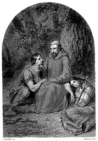 --Il y a trois semaines, en venant ici, je traversais l'Anjou... Un jour, je m'étais trompé de route dans une forêt, la nuit vient; après avoir longtemps, longtemps marché, m'égarant de plus en plus au plus profond des bois, j'aperçois au loin une grande lueur qui sortait d'une caverne: j'y cours, je trouve dans ce repaire une centaine de joyeux Bagaudes, festoyant autour du feu avec leurs Bagaudines, car ils ont souvent avec eux des femmes déterminées... Les autres nuits, ils avaient fait, comme d'habitude, une guerre de partisans contre les seigneurs franks, nos conquérants, attaquant leurs burgs, ainsi que ces barbares appellent leurs châteaux, combattant avec furie, sans merci ni pitié, pillant les églises et les villas épiscopales, rançonnant les évêques, pendant même parfois les plus méchants de ces prêtres, assommant et dévalisant les collecteurs du fisc royal; mais donnant généreusement au pauvre monde ce qu'ils reprenaient aux riches prélats, aux comtes franks, ces premiers pillards de la Gaule, et délivrant les esclaves qu'ils rencontraient enchaînes par troupeaux... Ah! par Aëlian et Aman, patrons des Bagaudes, c'est une belle et joyeuse vie que celle de ces gais et vaillants compères!... Si je n'étais revenu en Bretagne pour y voir encore une fois ma vieille mère, j'aurais avec eux couru un peu la Bagaudie en Anjou!