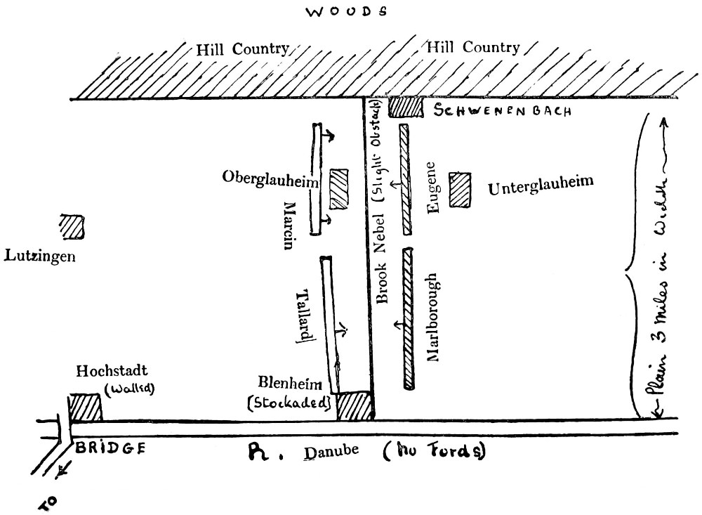 The position of the enemy at the moment when Marlborough’s march to the Danube from the Netherlands was conceived may be observed in the sketch map on page 59.