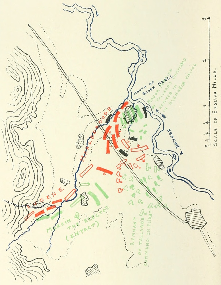 Similarly, the reputation justly earned by Marlborough when he brought his troops from the Rhine to the Danube must be kept distinct from his tactical successes in the field at the conclusion of the effort. He was to run a grave risk at Donauwörth, he was to blunder badly in attacking the village of Blenheim, he was to be in grave peril even in the last phase of the battle, when Eugene just saved the centre with his cavalry.