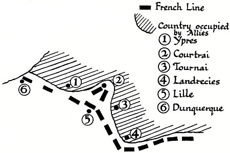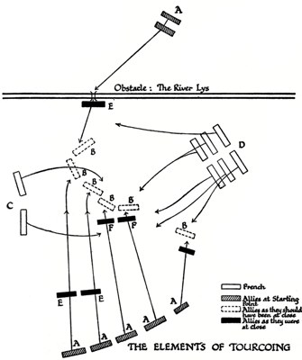 It will thus be seen that the allies, at the moment when the plan was about to be formulated, lay on either side of the French wedge, and that any scheme for cutting off that wedge from the main French line must consist in causing a great force of the allies to appear rapidly and unexpectedly between Courtrai and Lille.