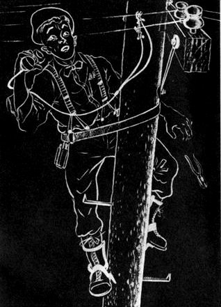 Sam hadn't even thought of hanging up. He was annoyed. He was up a telephone pole, trying to do some work, resting in his safety belt and with his climbing irons safely fixed in the wood. Naturally, he thought somebody was trying to joke with him, and when a man is working is no time for jokes.