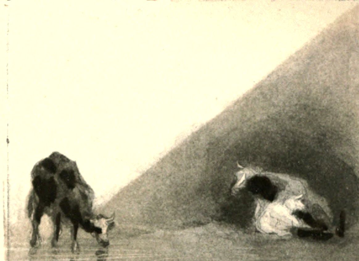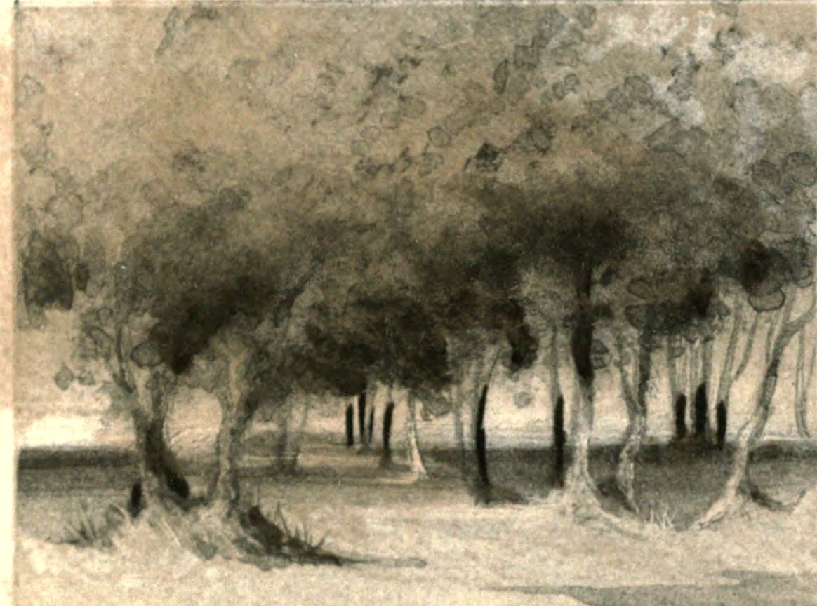 A long stretching swamp, a bog, or line of sandy waste, marshes, a[10] broken heath, the distant sea or sand-bank, with nothing but its straight horizon, are the sweetest morsels to good painters; for when nature has done nothing, they must do all; and, with these difficulties to contend with, it is something surprising to see the most broad and beautiful productions result from so barren materials by investing them with the all-controlling powers of chiaroscuro, by a careful inspection of their natural colours, the forms of their lights and shadows, and above all, the shapes and masses of the passing clouds; but variety and simplicity should ever be their leading principle, and grandeur is sure to be the result. Matter, seemingly incapable of form; wide extents of pathless and unbroken sterility, of nakedness and desolation, will become beautiful and masterly arrangements on these conditions: the torn, and ragged, and scattered fragments of the clouds in their wild and rushing fury over the sea, with its inexhaustible changes and endless variety of colour, are the objects painters often choose, from their very seeming nothingness, to invest with the beau ideal of art.
