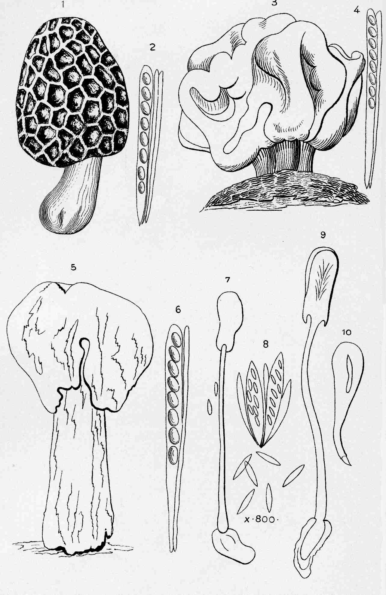 In the Ascomycetes are included the sub-families Discomycetes, Pyrenomycetes, and Tuberacei. Of these the Discomycetes and the Tuberacei are the only groups which contain any of the mushrooms, and but few of these are large enough or sufficiently tender to possess value as esculents. A good example of the first (Discomycetes) is found in the Morel, and of the second (Tuberacei) in the Truffle.