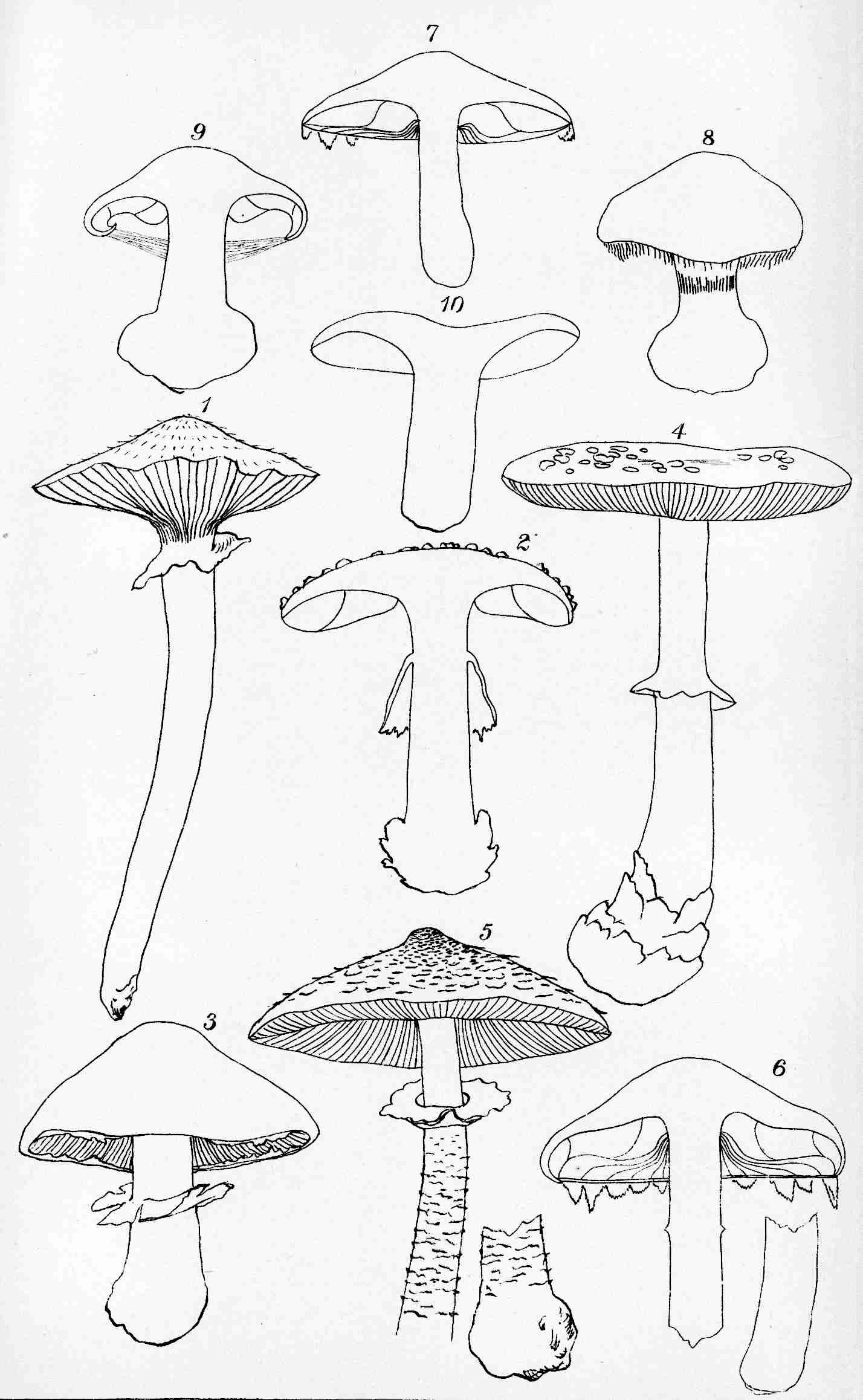 The three mushrooms illustrated and described in this pamphlet, Plates I, II, and III, are of the order Agaricini or gilled mushrooms. They are well-defined types and of wide geographical distribution.