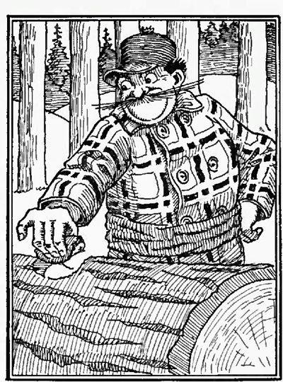 "Standing alone in his might and inventiveness is Paul Bunyan, central figure in America's meager folklore" Mr. Smits says editorially, "Only among the pioneers could Paul thrive, his deeds are inspired by such imagination as grows only in the great outdoors. For hours at a time, lumberjacks will pile up the achievements of their hero. Each story is a challenge calling for a yarn still more heroic. The story teller who succeeds in eliciting a snicker is an artist, indeed, as the Paul Bunyan legends must always be related and received with perfect seriousness. Paul Bunyan has become a part of the every day life of the loggers. He serves a valuable purpose in giving every hardship and tough problem its whimsical turn."