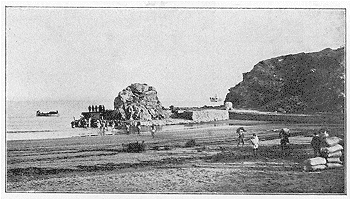 Un port est en construction et un abri temporaire permet à de petits bateaux plats, en usage aussi à Tanger et appelés «gondoles», les embarquements d'orge, de bestiaux, ou les débarquements de matériaux et d'approvisionnements, destinés au camp des zouaves et au bordj des spahis.