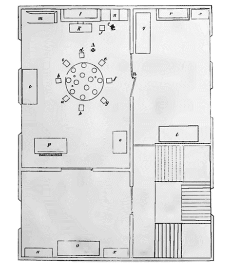 Ce bâtiment, dont nous donnons ici le dessin, a 18 mètres de longueur en façade, 17 de profondeur et 12 d'élévation.