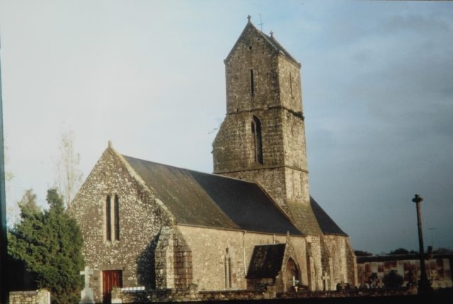 043. Yquelon. L'église romane est placée sous le vocable de Saint Pair, et le second saint est Saint Maur. La paroisse appartenait au doyenné de Saint-Pair et à l'archidiachoné de Coutances. Les églises d'Yquelon et de Bréville ont des traits communs et datent de la même époque, la seconde moitié du douzième siècle. Photo d'Alain Dermigny. [Alain-024]