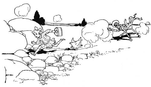 "Why, I've just laid an egg, that's all," replied a small, but sharp and distinct voice, and looking around her the little girl discovered a yellow hen squatting in the opposite corner of the coop.